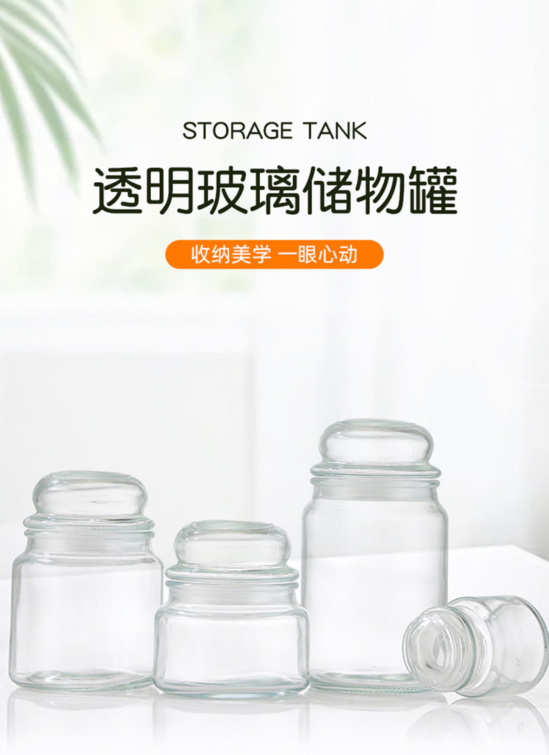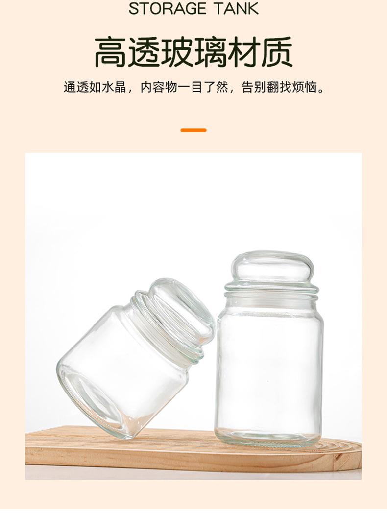 Tanque de almacenamiento de cabeza de hongo transparente redondo, tanque de almacenamiento de bocadillos sellado, tanque de almacenamiento de alimentos de cocina con tapa al por mayor