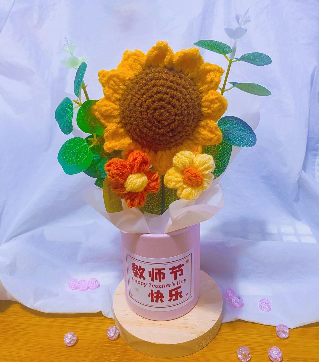 Girasoles buquete de hilo de lana abrazando buquete de tejido DIY tejido a mano buquete al por mayor