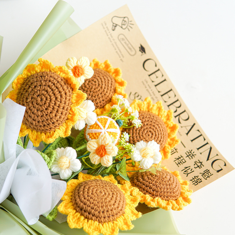 Día del maestro hecho a mano un ramo de girasoles mezclar y combinar imitación de lana crochet tulipán adornos de mesa