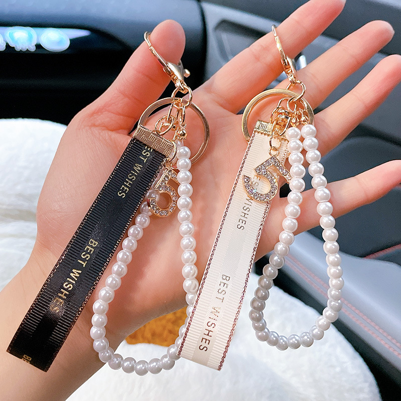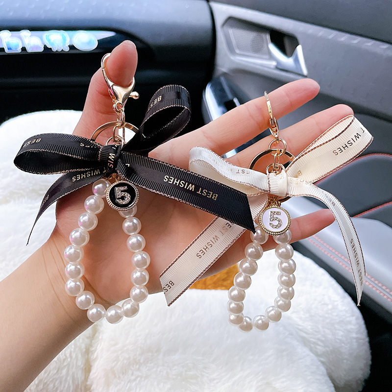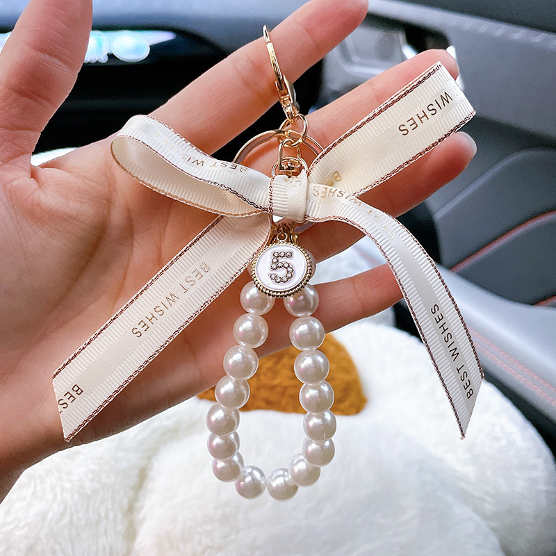Nuevo simple llavero de arco de perla pequeño bolso colgante de automóvil interior colgante al por mayor