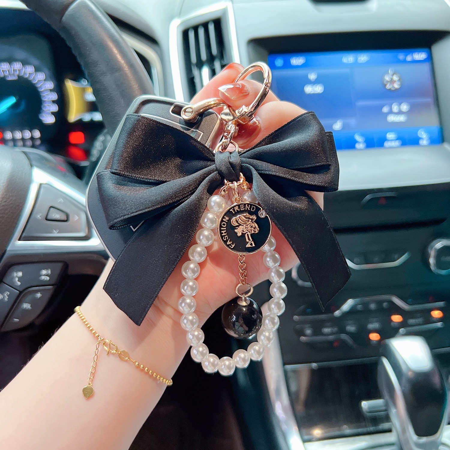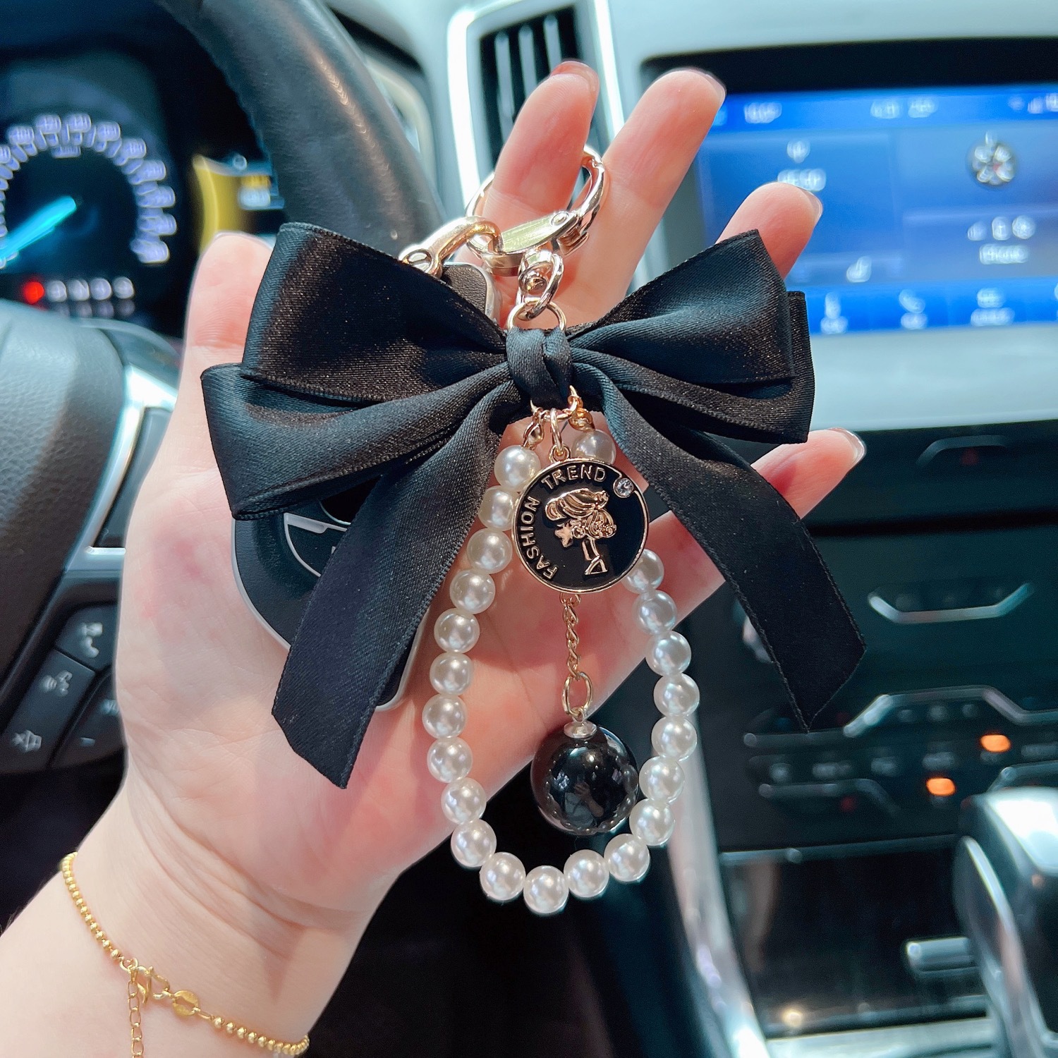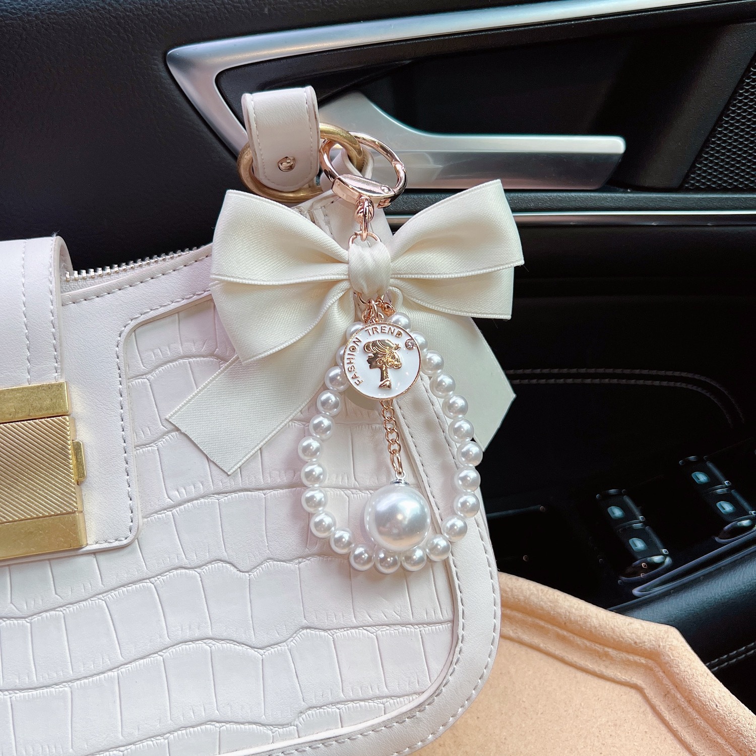 Arco fragante coreano cabeza de mujer llavero de perlas bolsos personales colgantes decoración fábrica al por mayor