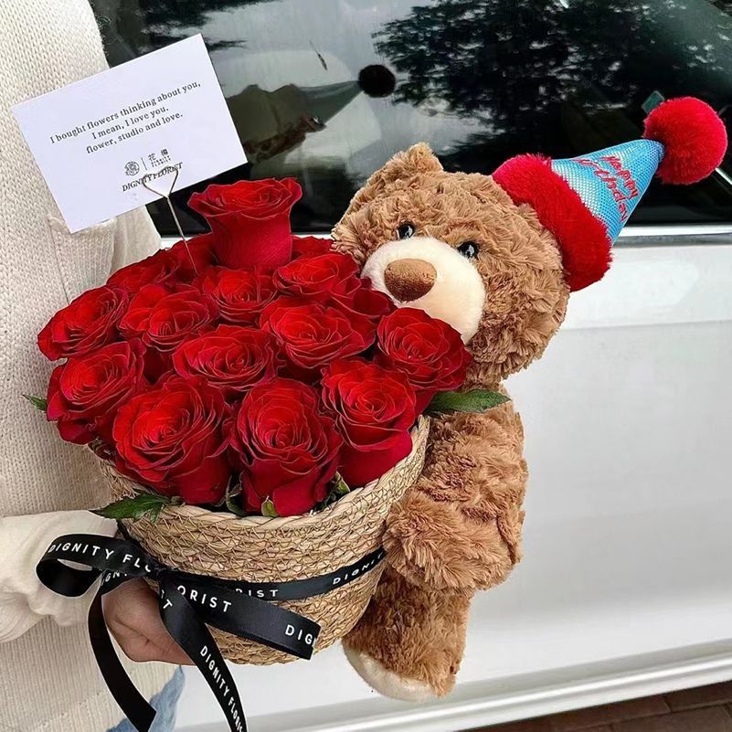 Oso de peluche con flores eternas para regalo de Año Nuevo, oso de peluche con ramo de flores para regalo de cumpleaños para amigas
