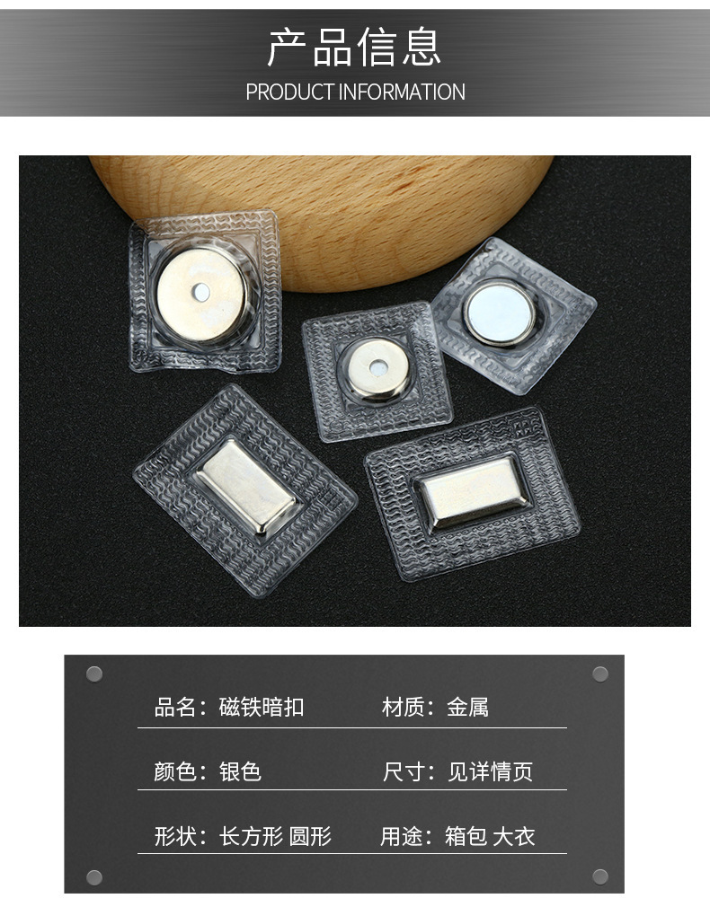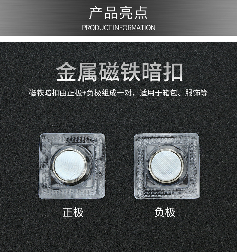 Directo de fábrica hebilla invisible bolsa de succión hebilla de hierro ropa bolsa imán hebilla accesorios fuerte succión magnética oscuro