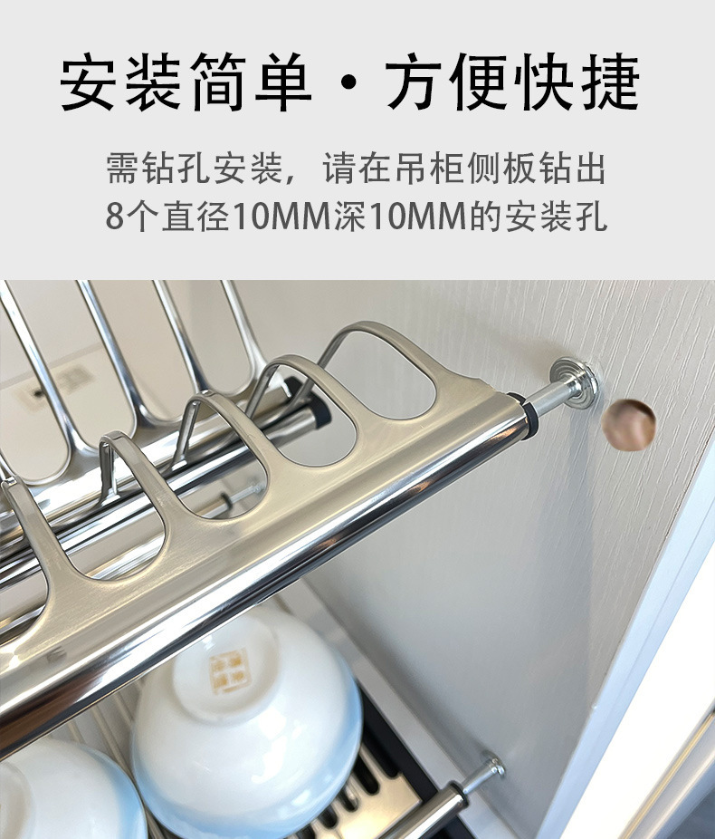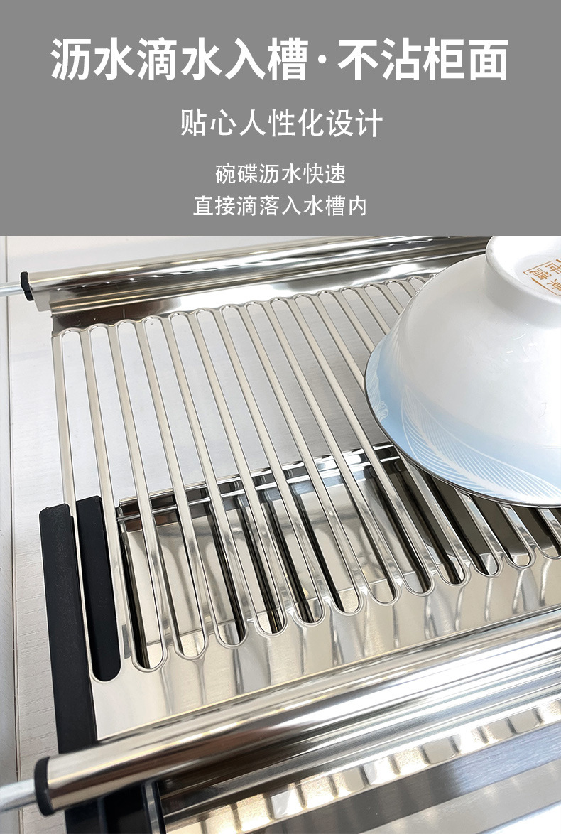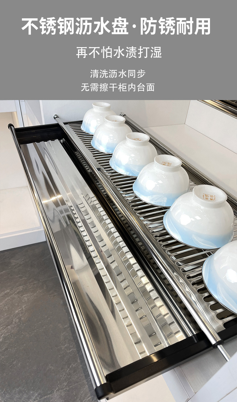 Gabinete de cocina gabinete estante de almacenamiento de doble capa incorporado estante de drenaje de platos de acero inoxidable estante de cocina estante de platos