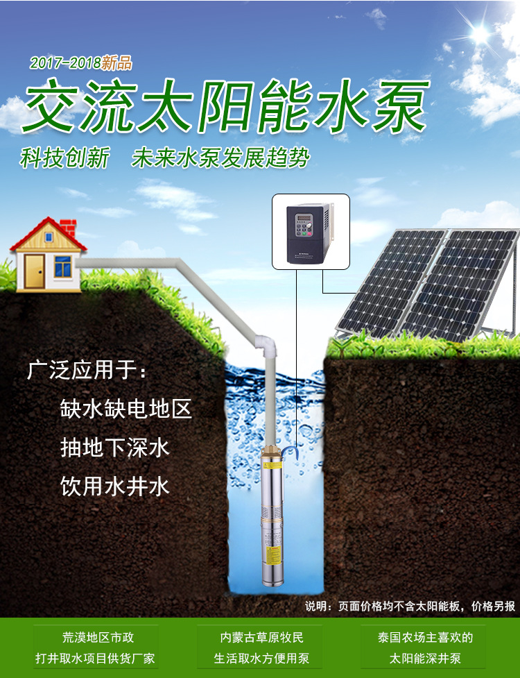 Bomba de agua solar AC / DC de doble propósito sincronización de imán permanente de acero inoxidable bomba de agua profunda fotovoltaica de alta potencia bomba de pozo profundo