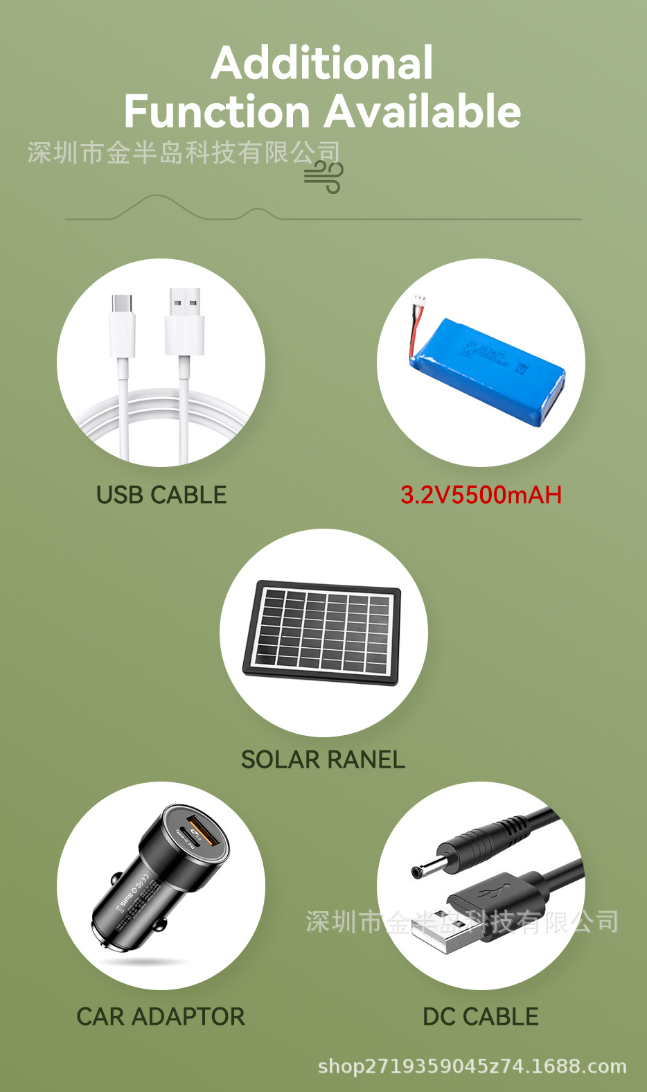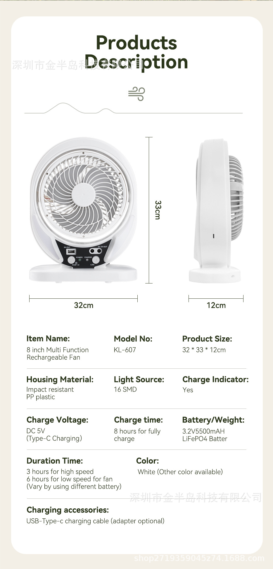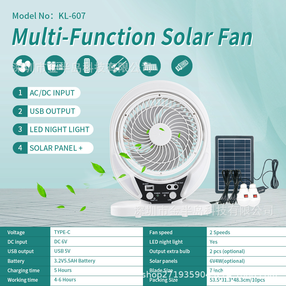 Comercio exterior venta caliente de 8 pulgadas TYPEC ventilador solar recargable conjunto de lámpara de ventilador recargable doméstico de campamento 4W