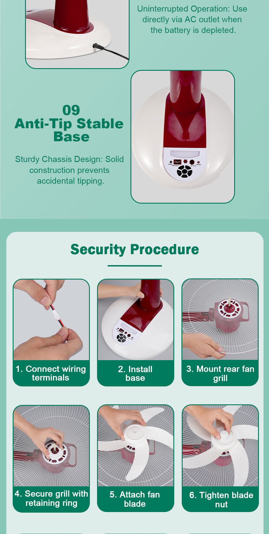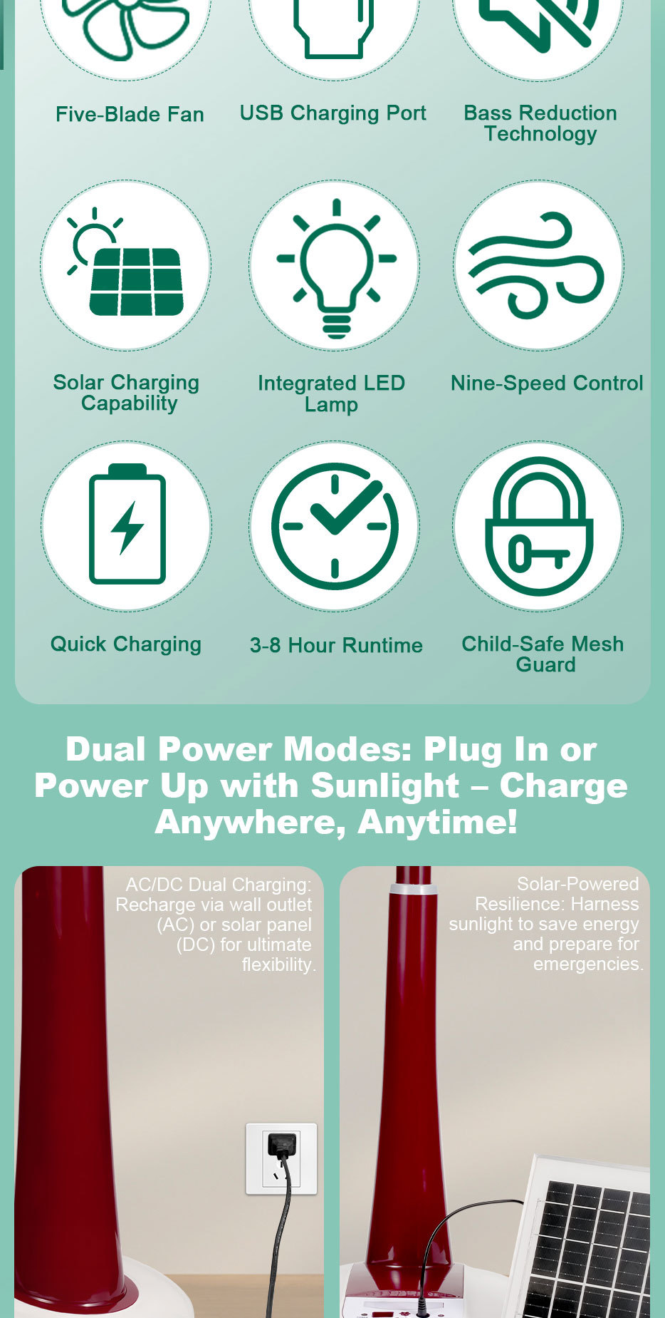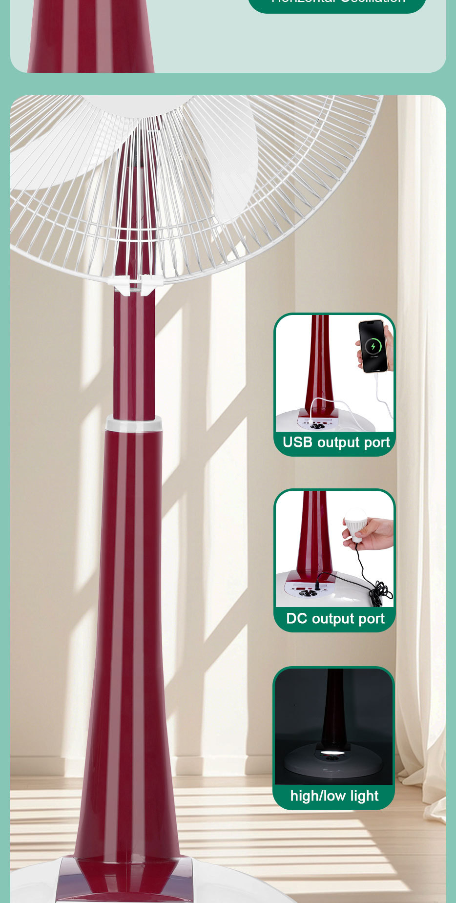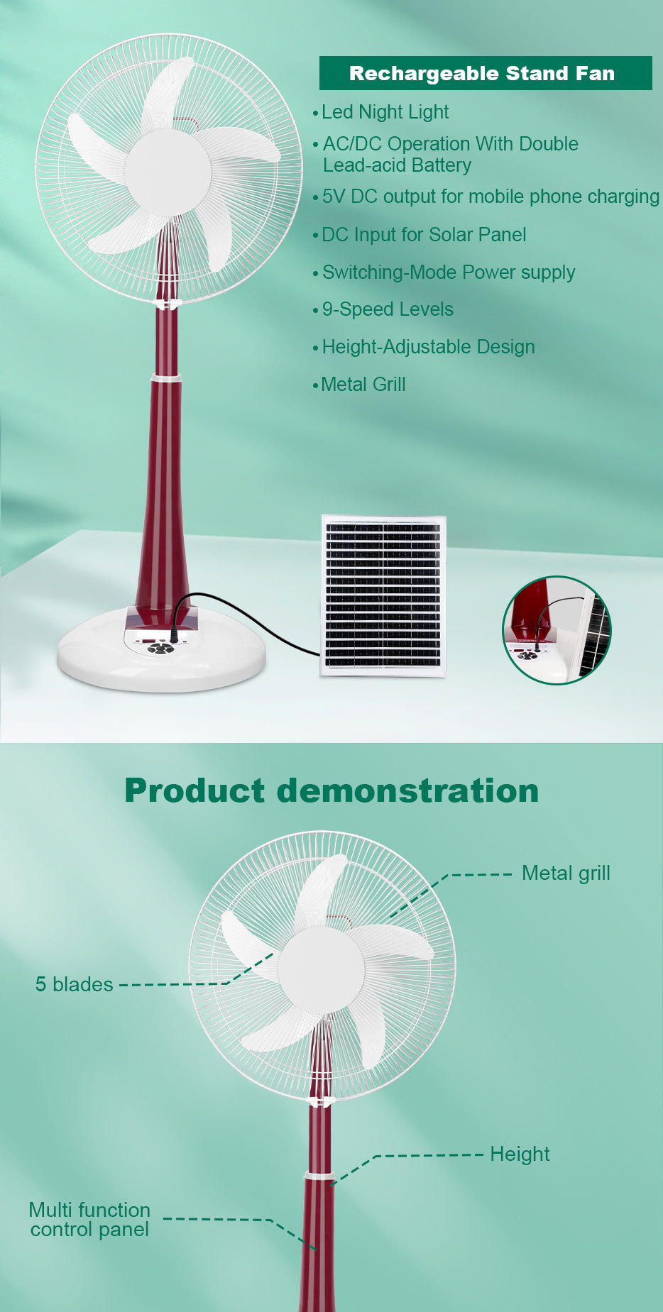 Ventilador solar ventilador de piso recargable ventilador de corriente continua usuarios de casa acampando 16 pulgadas suministro de energía solar