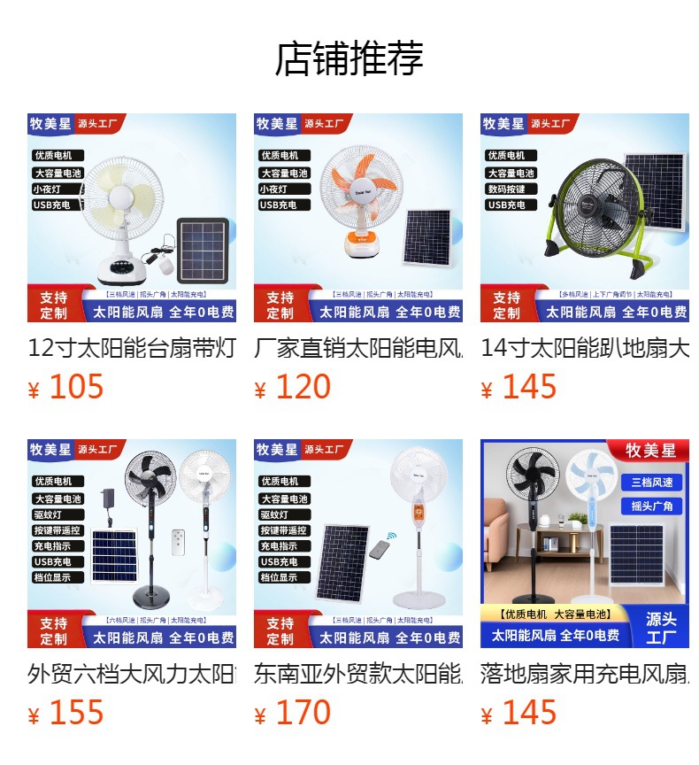 12 pulgadas ventilador de piso de campamento al aire libre del sudeste asiático 14 pulgadas multigranaje ventilador de carga solar