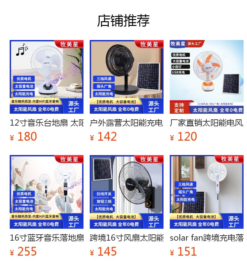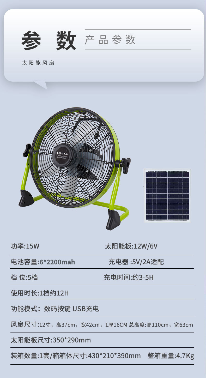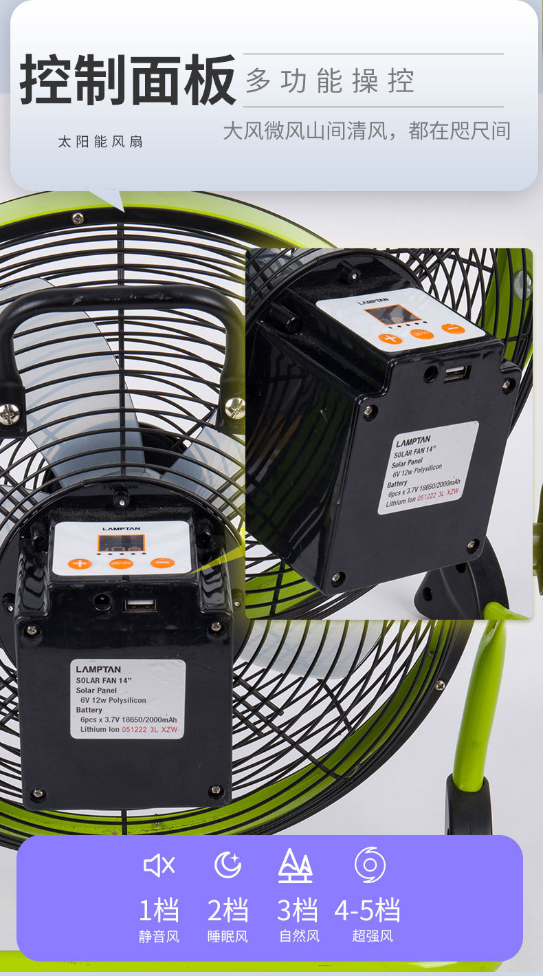 Ventilador solar de 14 pulgadas, gran viento, camping al aire libre, fábrica de pesca, venta al por mayor, 12 pulgadas, Solarfan transfronterizo