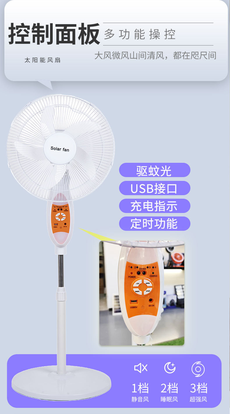 Ventilador solar de comercio exterior del sudeste asiático, corte de energía en el hogar, fiesta al aire libre de emergencia, picnic, mayor capacidad, ventilador de piso