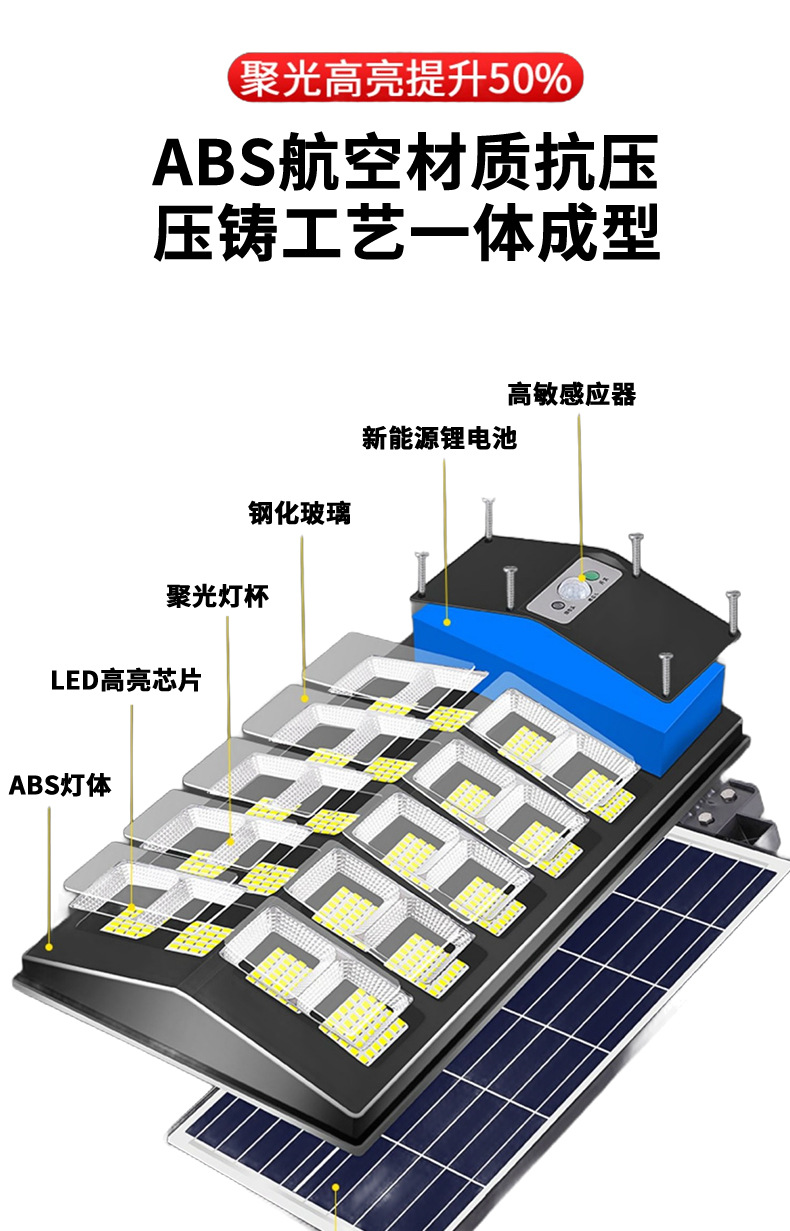 lámpara solar integrada lámpara de jardín doméstica iluminación de carretera al aire libre luz de alta potencia de inducción del cuerpo humano