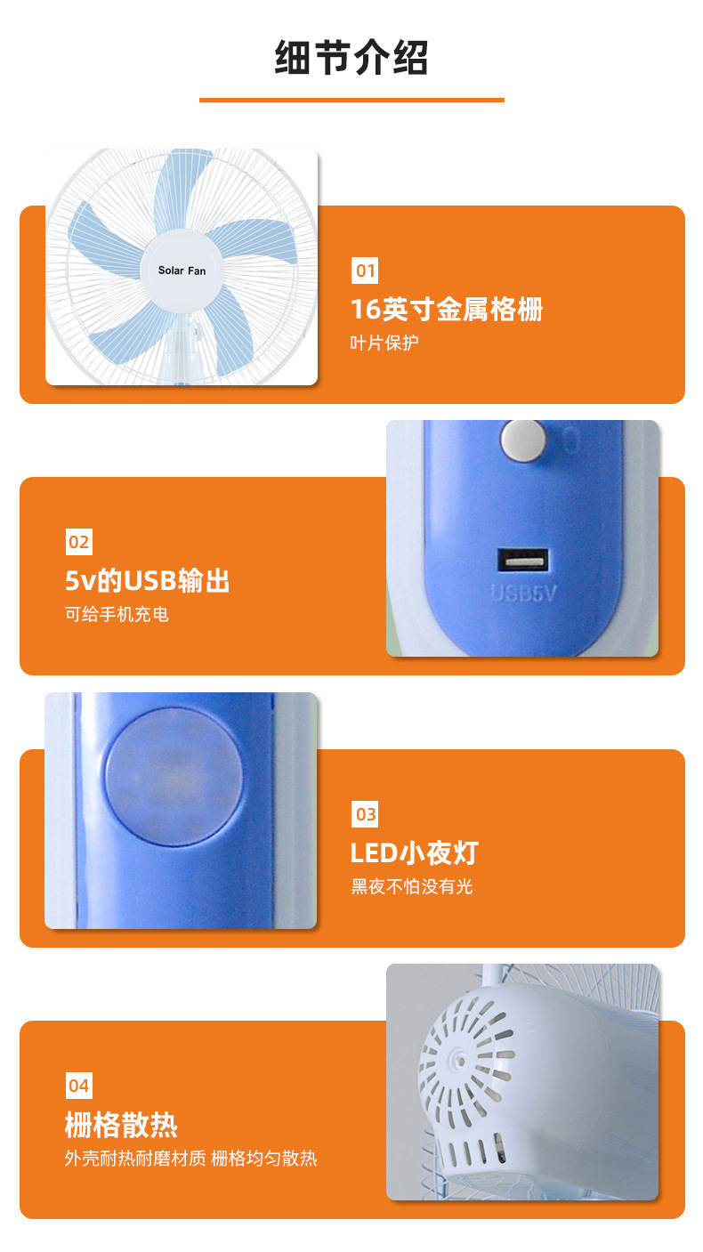 Ventilador de pie para uso doméstico, ventilador recargable, ventilador oscilante de pie para exteriores con viento fuerte, ventilador recargable con energía solar para comercio transfronterizo en África.