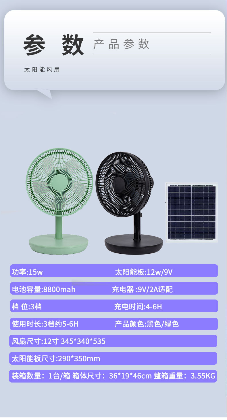 | Nombre 1 | Fan de mesa de carga solar |