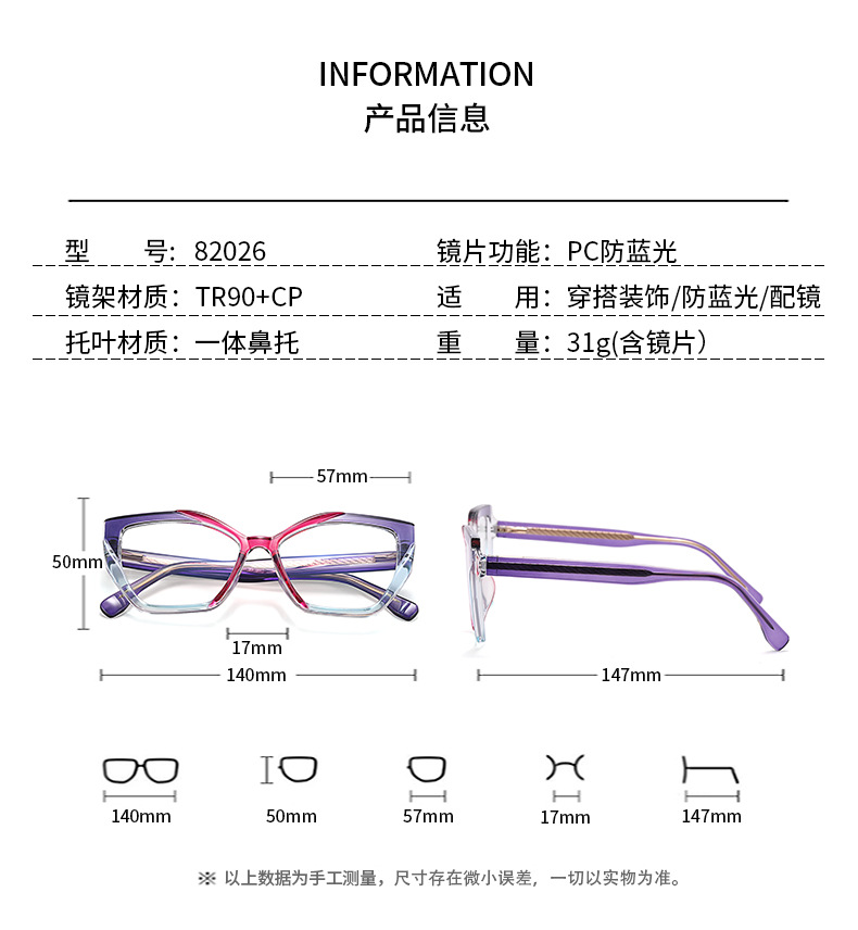 82026 viento transfronterizo tr90 anti-azul luz gafas de primavera pie llano gafas óptico marco CP insertar color gafas marco