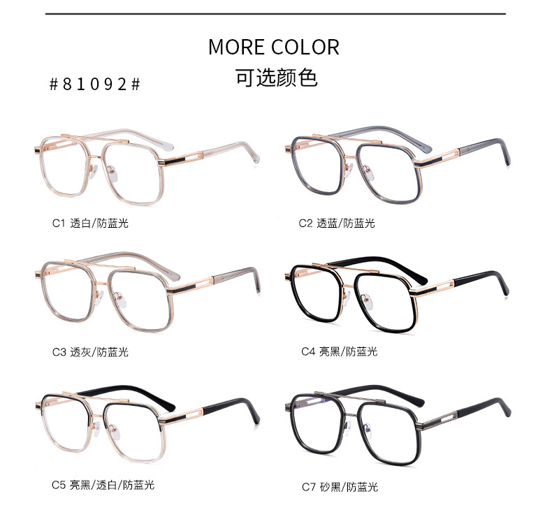 81092 nuevo marco de Gafas de metal TR90 doble haz polígono gafas lisas anti-Luz Azul gafas marco puede ser equipado con gafas de miopía