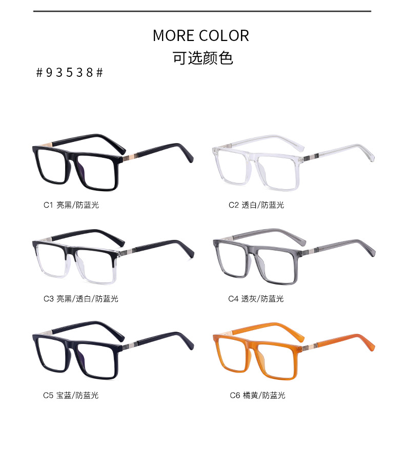 93538 Nuevo producto transfronterizo Gafas anti-azul de marco cuadrado para hombre TR montura completa para gafas de miopía bisagra de resorte