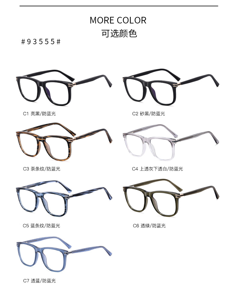 93555 nuevos marcos de gafas de luz azul miopía pueden equiparse con grados de fábrica al por mayor comercio exterior marco de gafas de luz plana hombre
