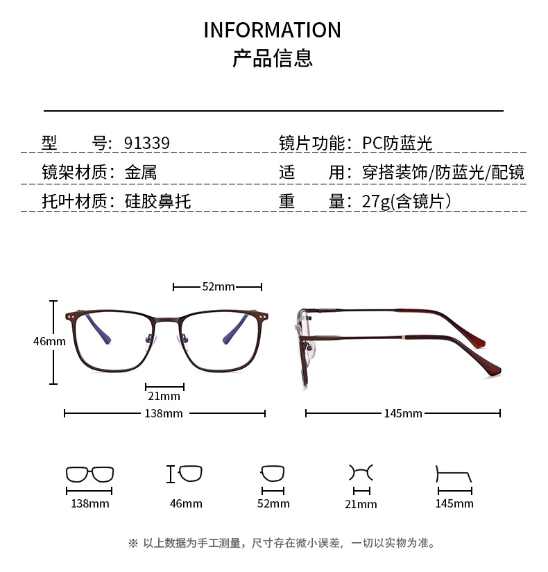 Fábrica de origen metal gafas anti-luz azul OEM personalizable etiquetable logo personalizable91339