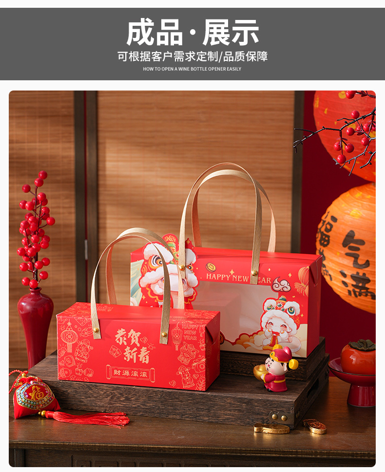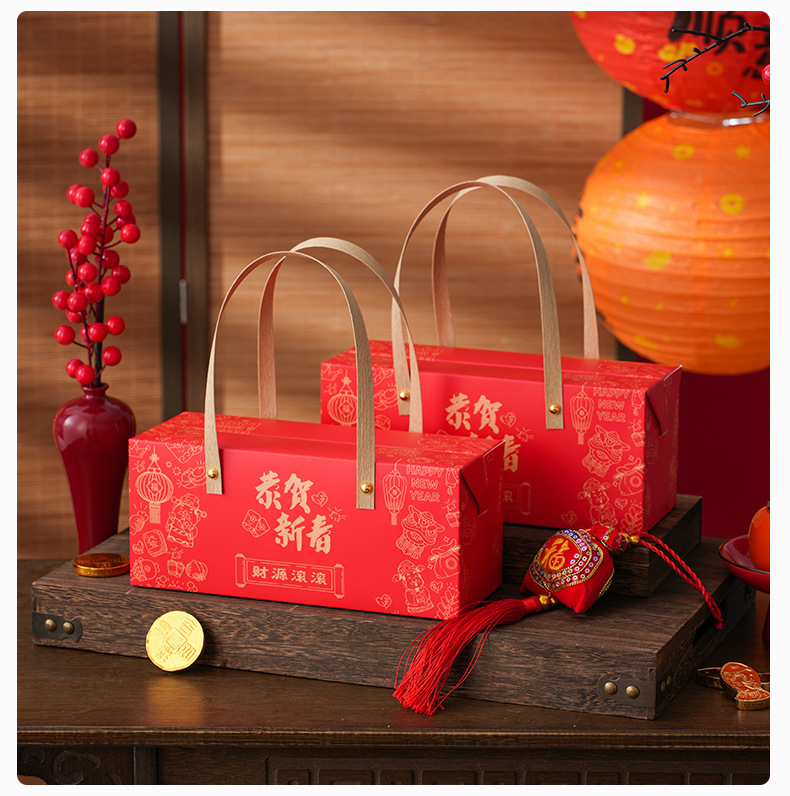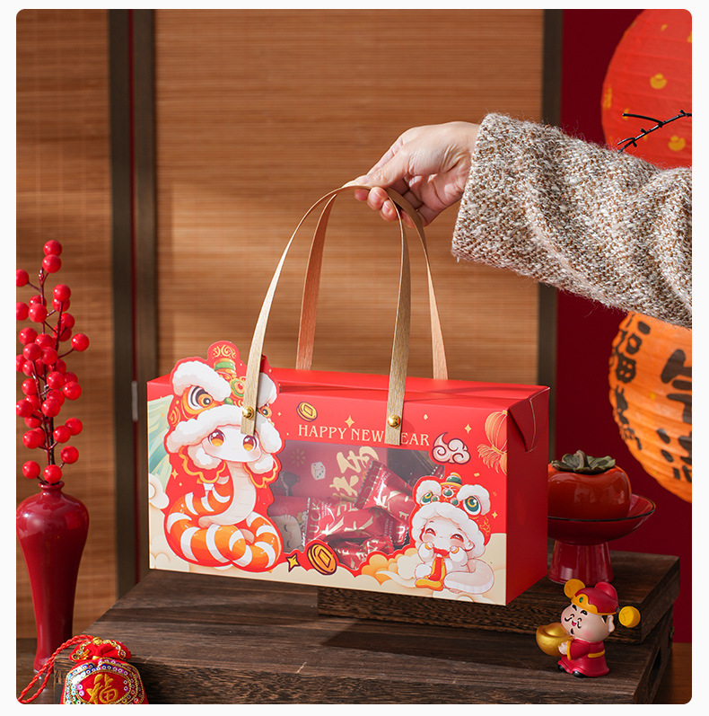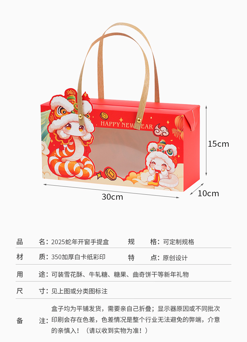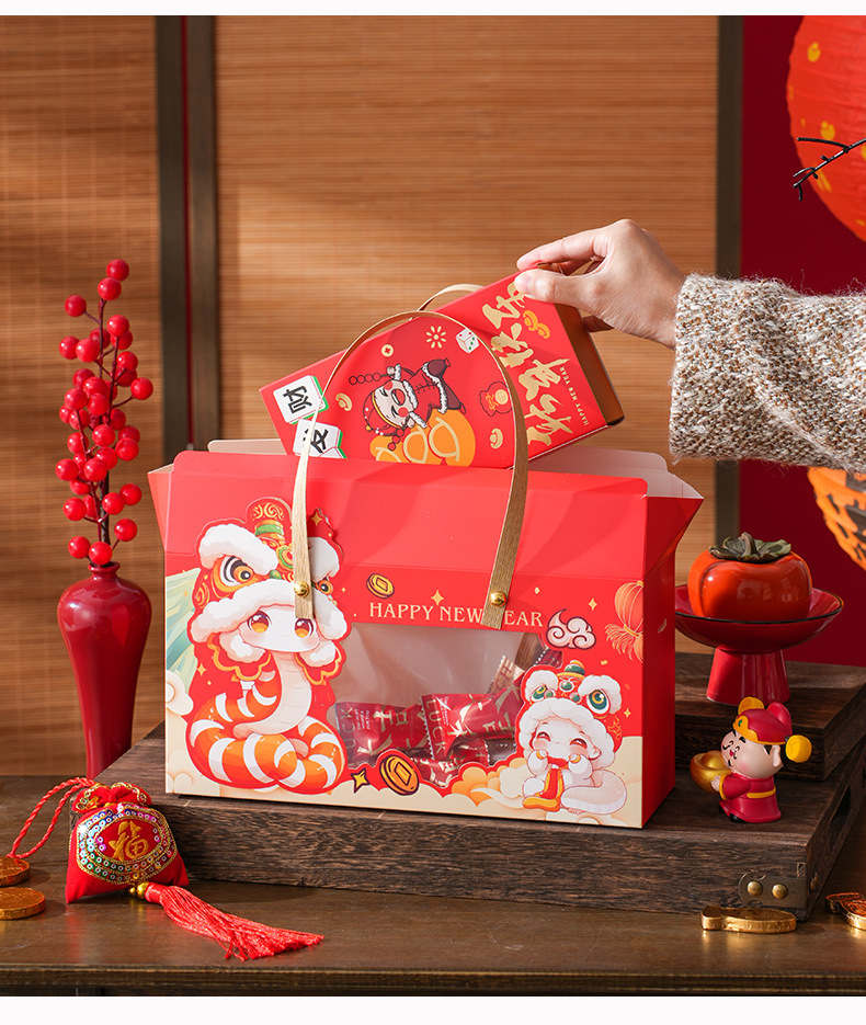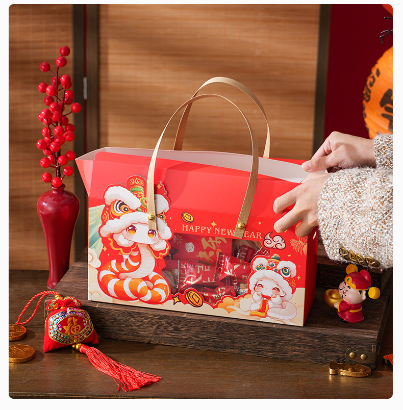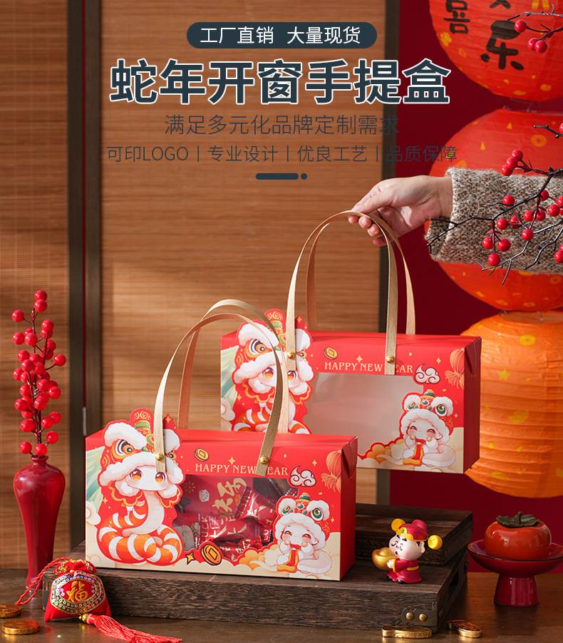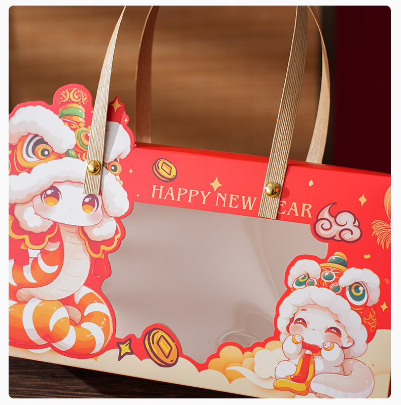 | Especificación | Felicitaciones por la caja de regalo de mano de Año Nuevo,Caja de regalo portátil del año de la serpiente |