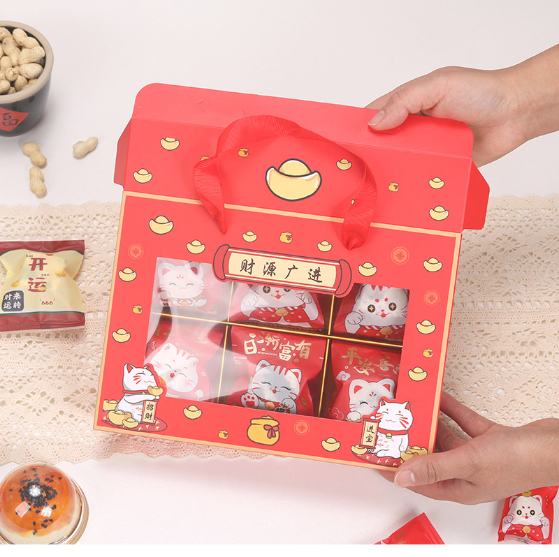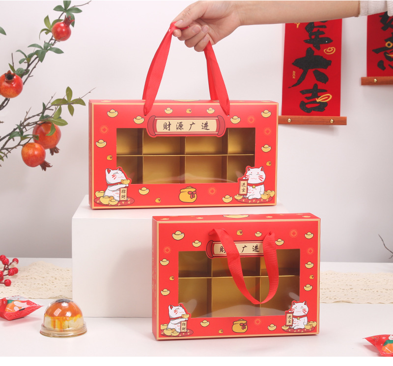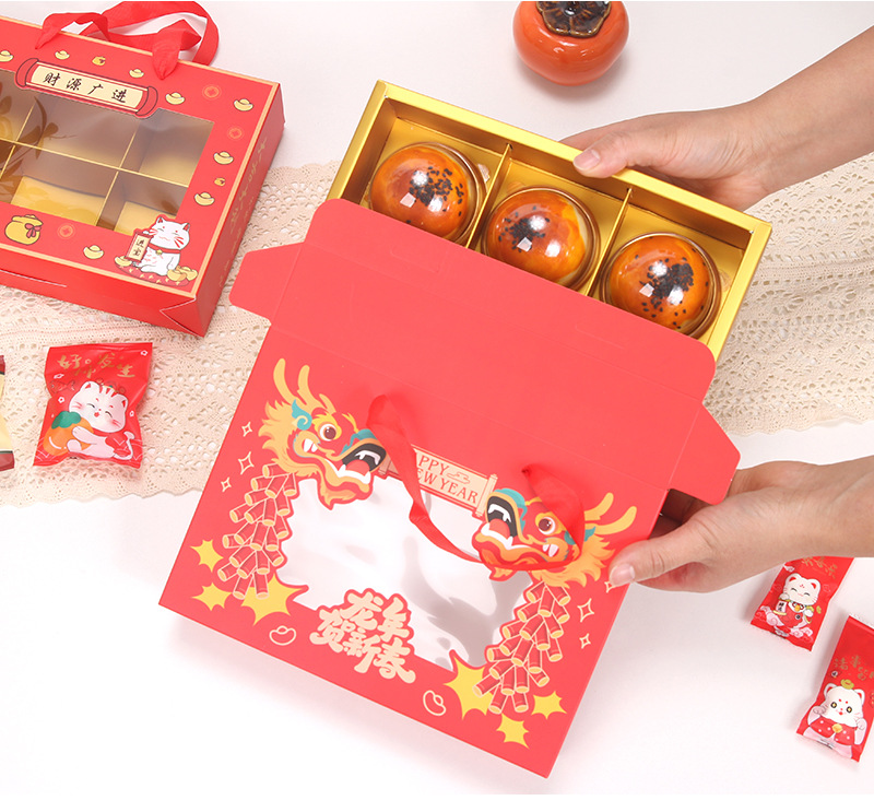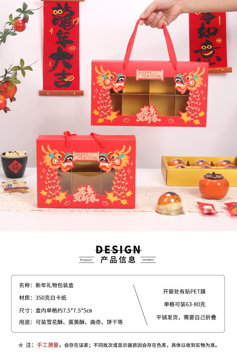 Caja de embalaje de pastel de copo de nieve de año nuevo 6 piezas Caja de regalo de pastel de yema de huevo de 8 cuadrículas Regalo de año nuevo Caja de galletas para hornear portátil