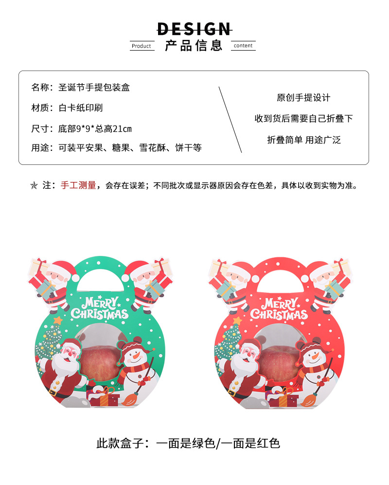 | Especificación | Caja de manzanas portátil navideña. |