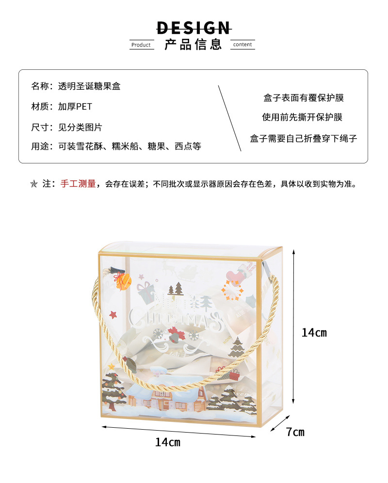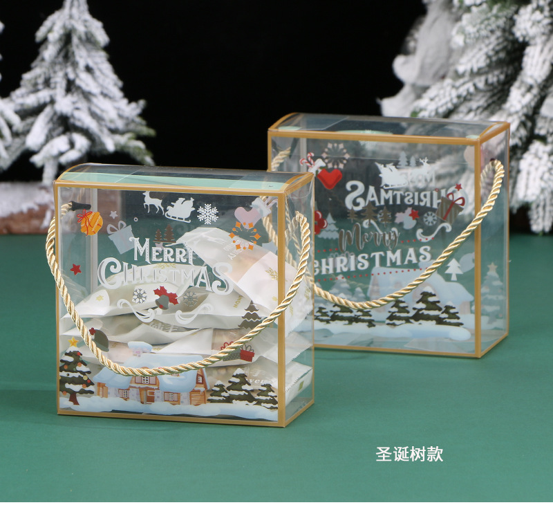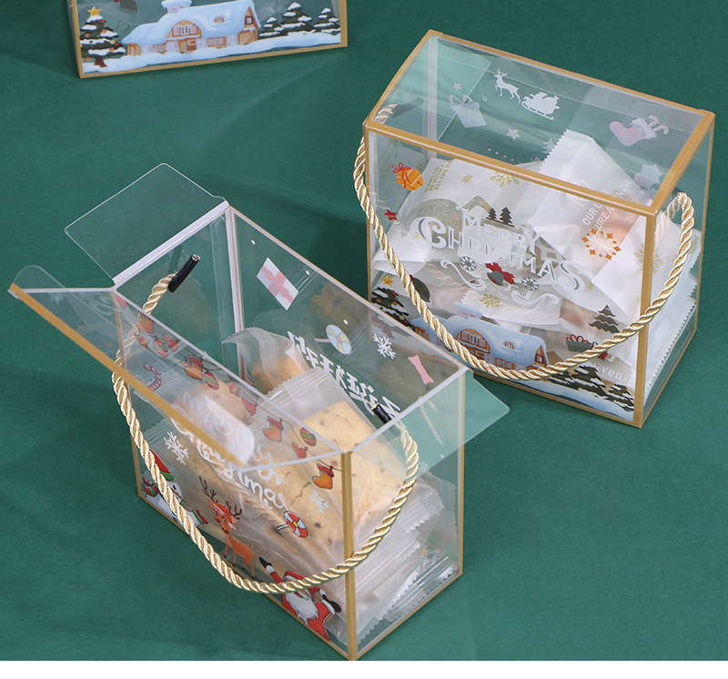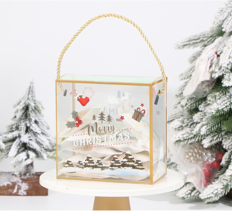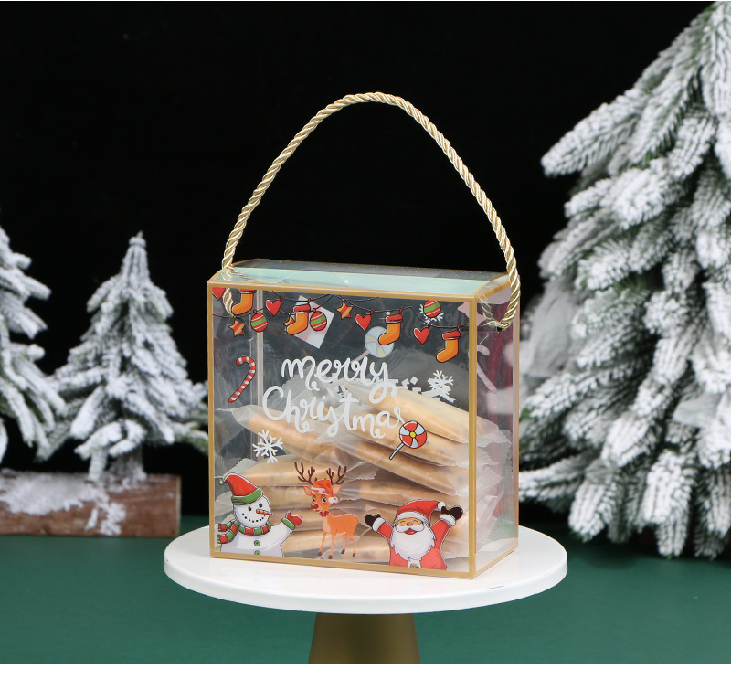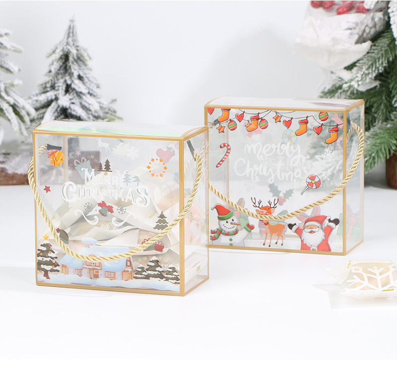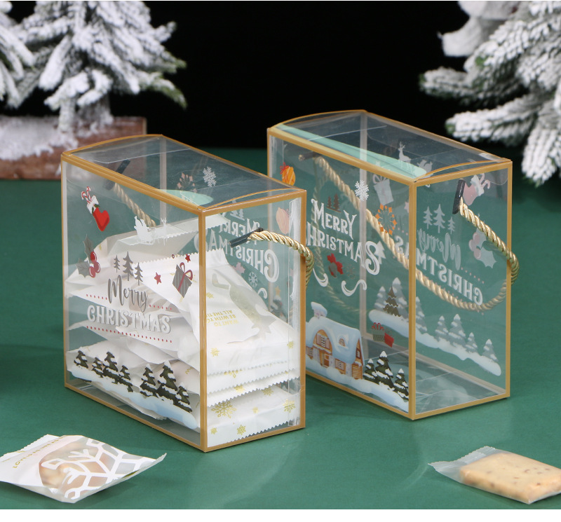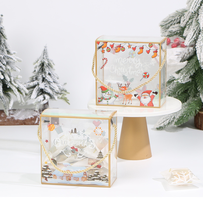 PET portátil transparente caja de embalaje de Navidad copo de nieve pastelería caja de caramelo seco caja de regalo de pastelería para hornear