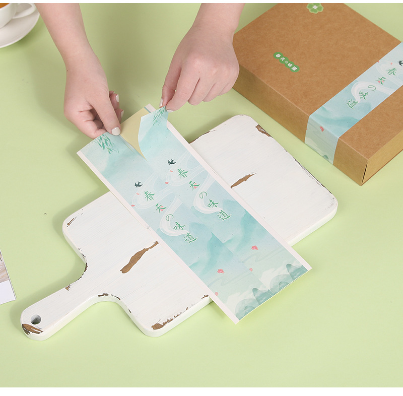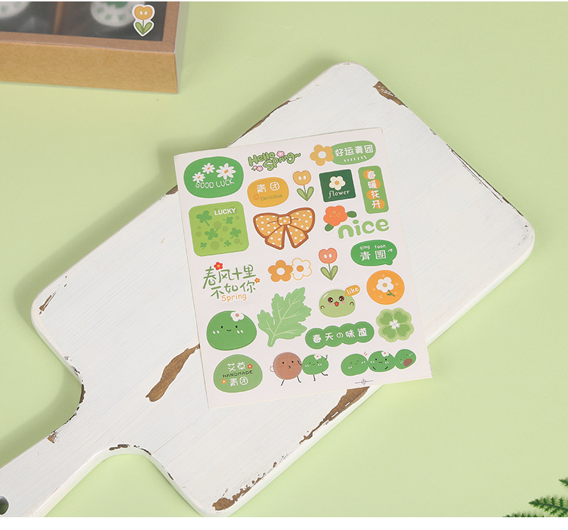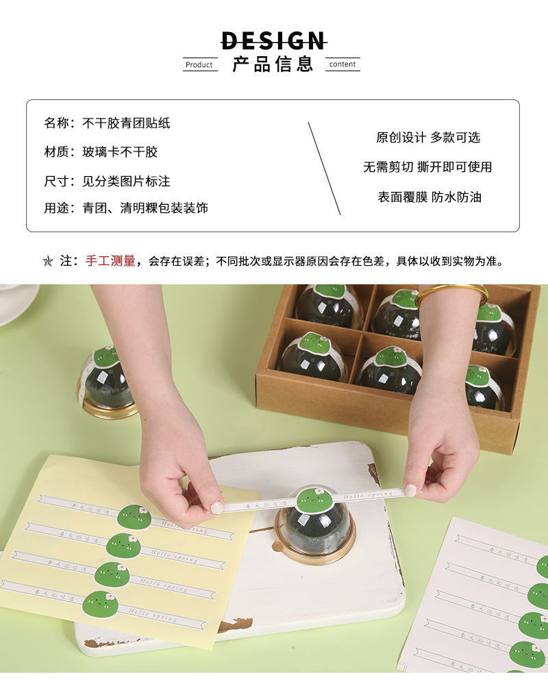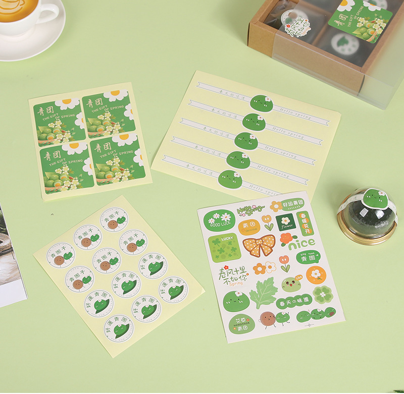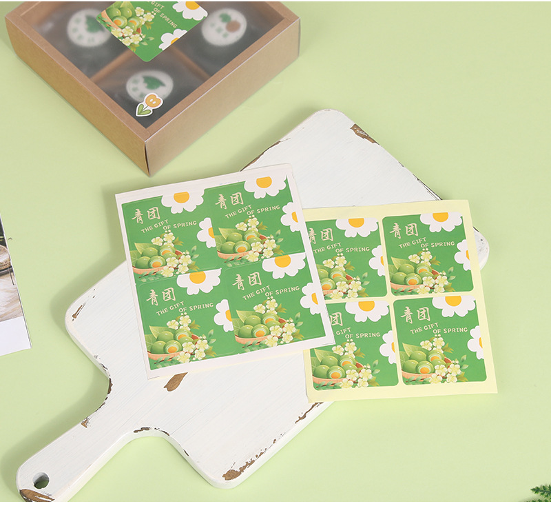 Venta directa bola verde caja de embalaje pegatinas decorativas Qingming sello sellado pegatinas etiqueta larga autoadhesiva película de color redondo