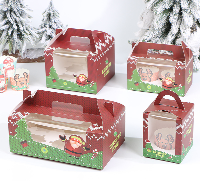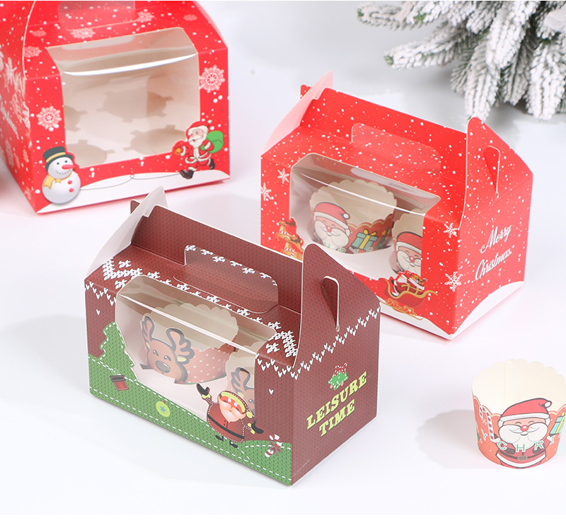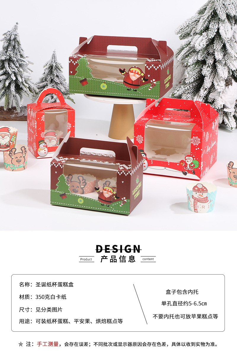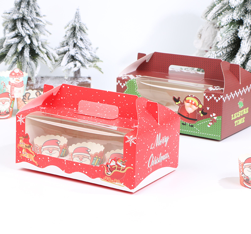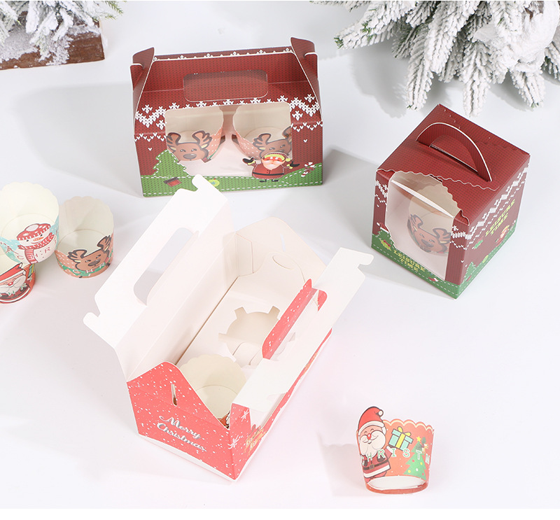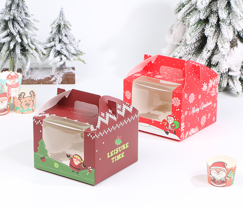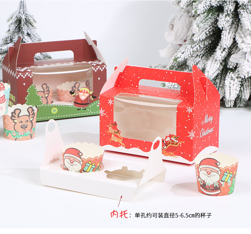 Venta directa de Navidad taza de papel pastel caja de embalaje de una fruta caja de embalaje portátil taza de Navidad caja de la torta al por mayor