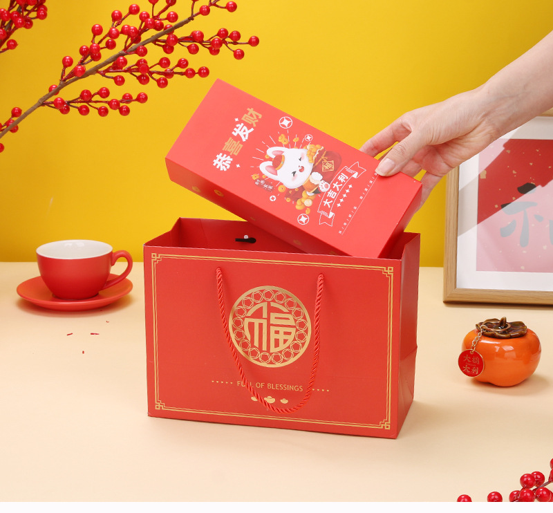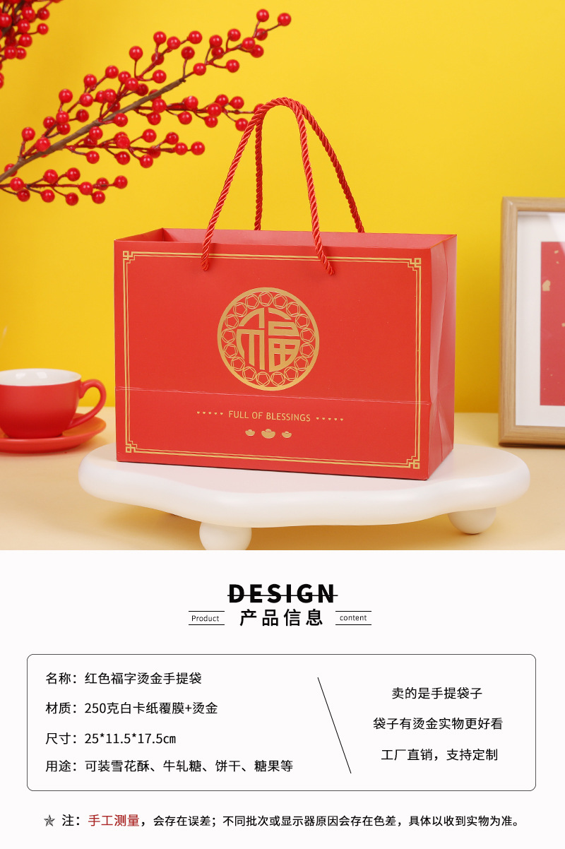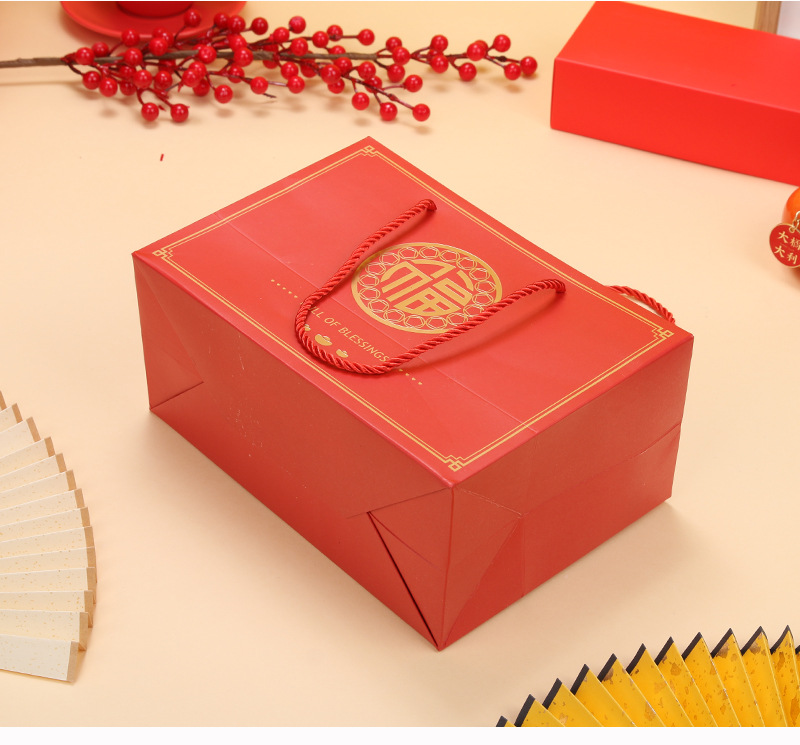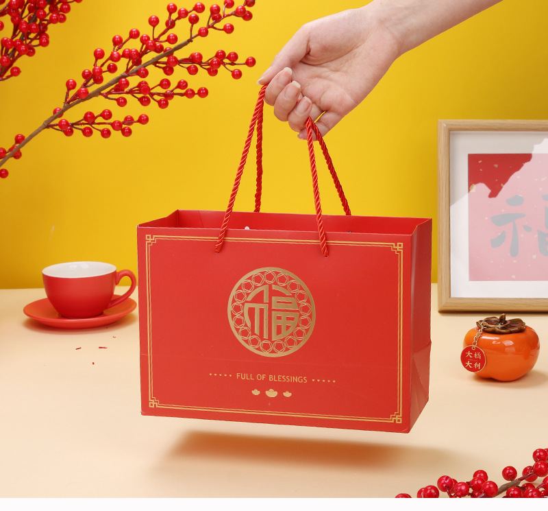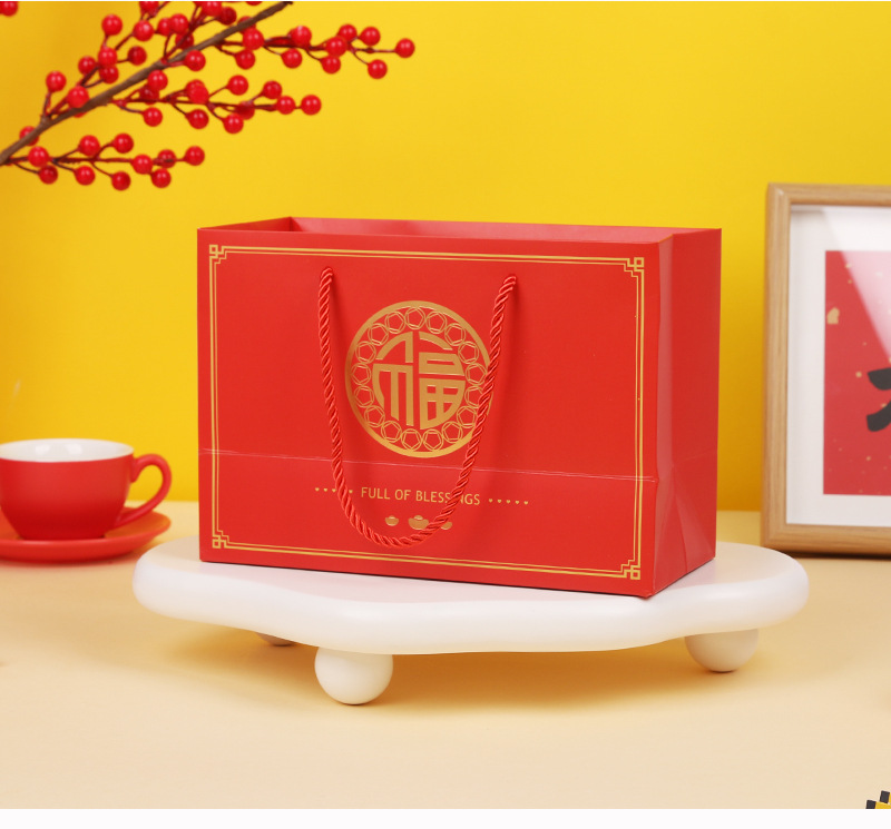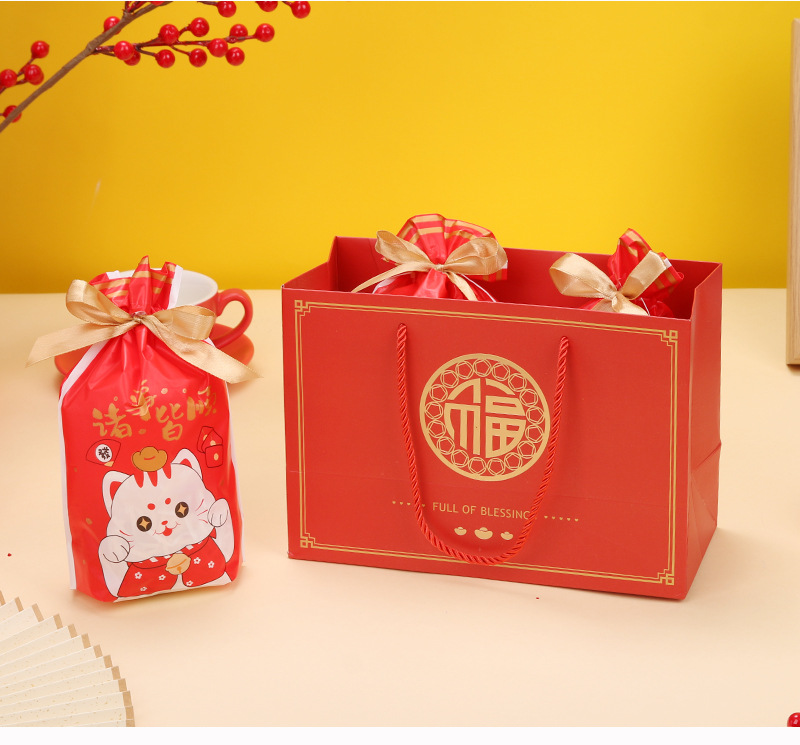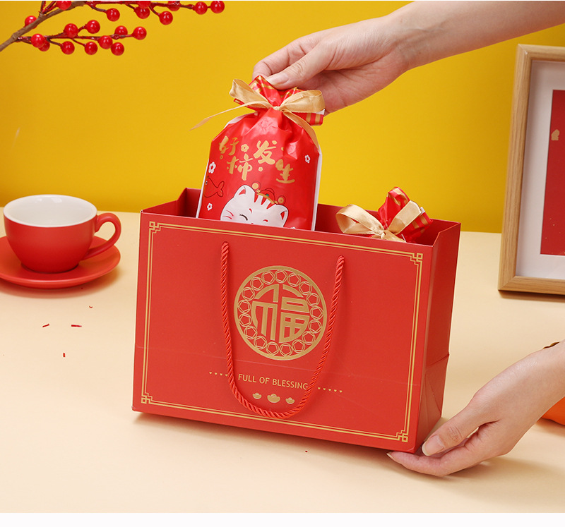 Año nuevo moda nacional oro estampado bolso para hornear caja de embalaje bolsa de papel de embalaje regalo de Año Nuevo bolsa de mano bolsa de regalo