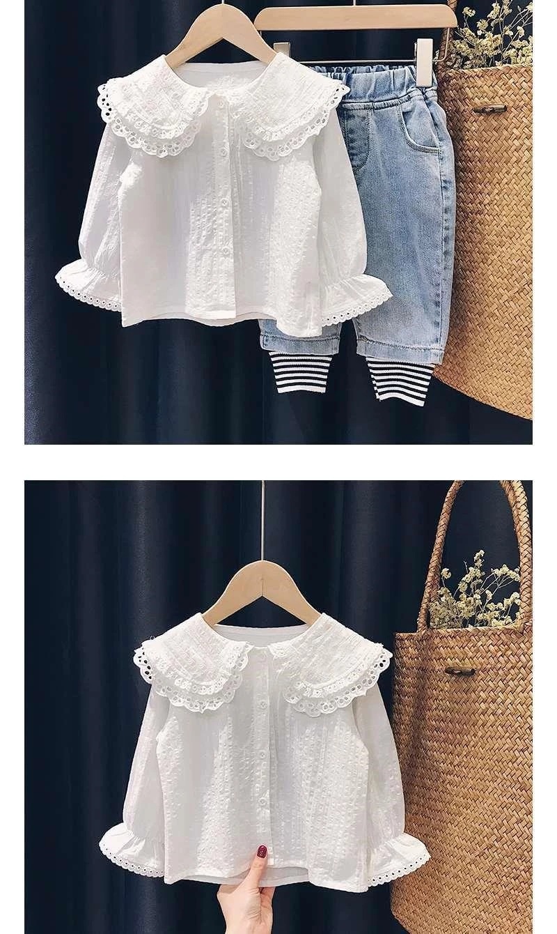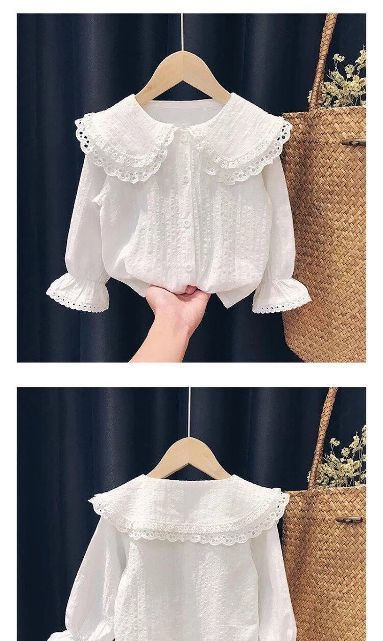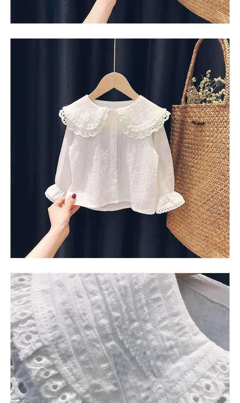 Camisa para niñas 2024 primavera y otoño camisa blanca delgada Rebeca estilo coreano casual de manga larga estilo occidental camisa superior para niñas