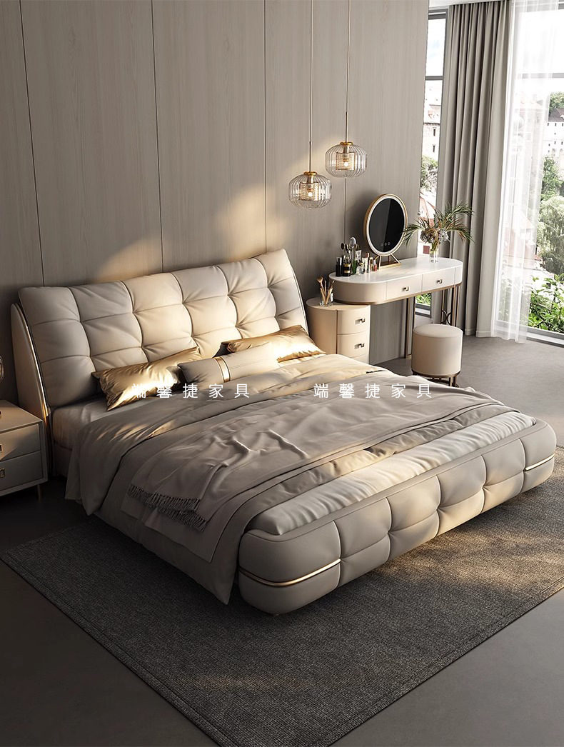 Cama de cuero moderna y simple, cama de lujo, cama doble de alta calidad, cama de matrimonio de envoltura blanda, cama queen size de 2 * 2m