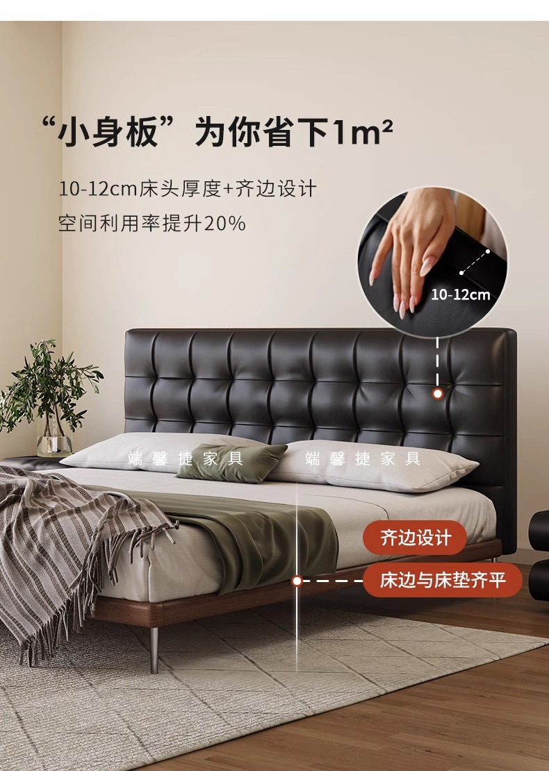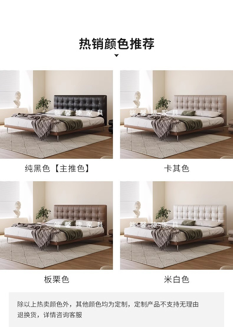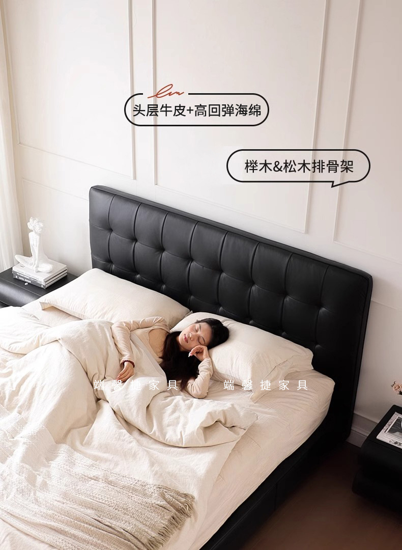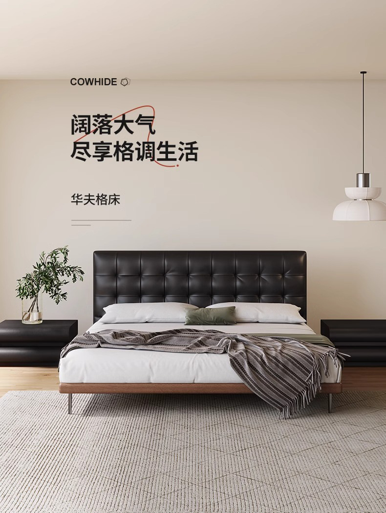 Camas de cuero minimalistas italianas, camas de waffle negras modernas y simples, camas de casado retrógradas, camas de cama de lado, camas de nube