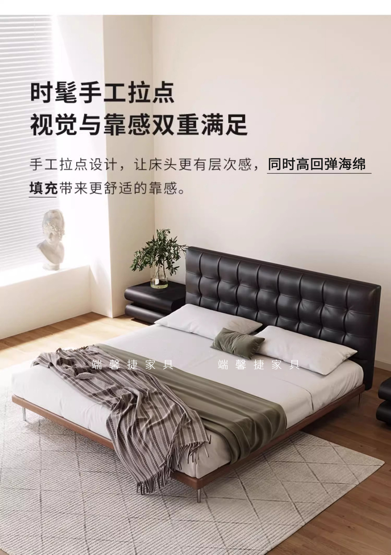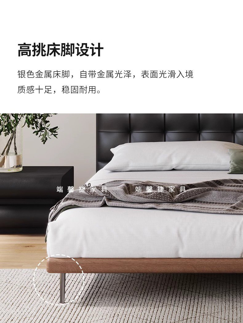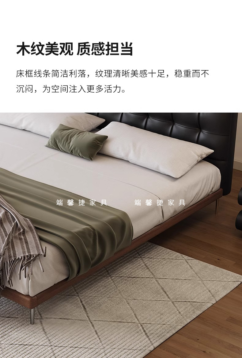 Camas de cuero minimalistas italianas, camas de waffle negras modernas y simples, camas de casado retrógradas, camas de cama de lado, camas de nube