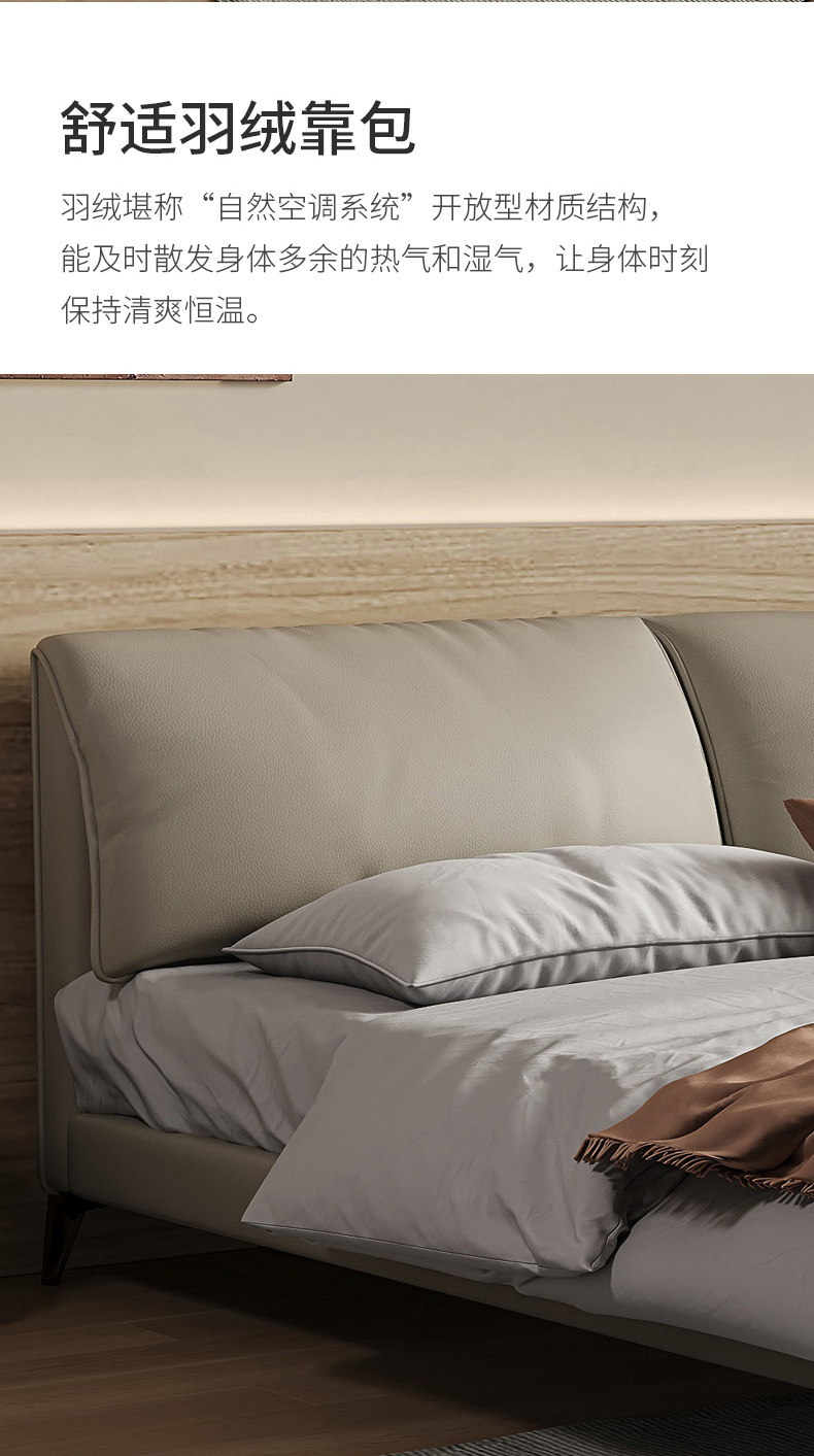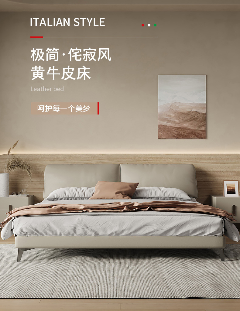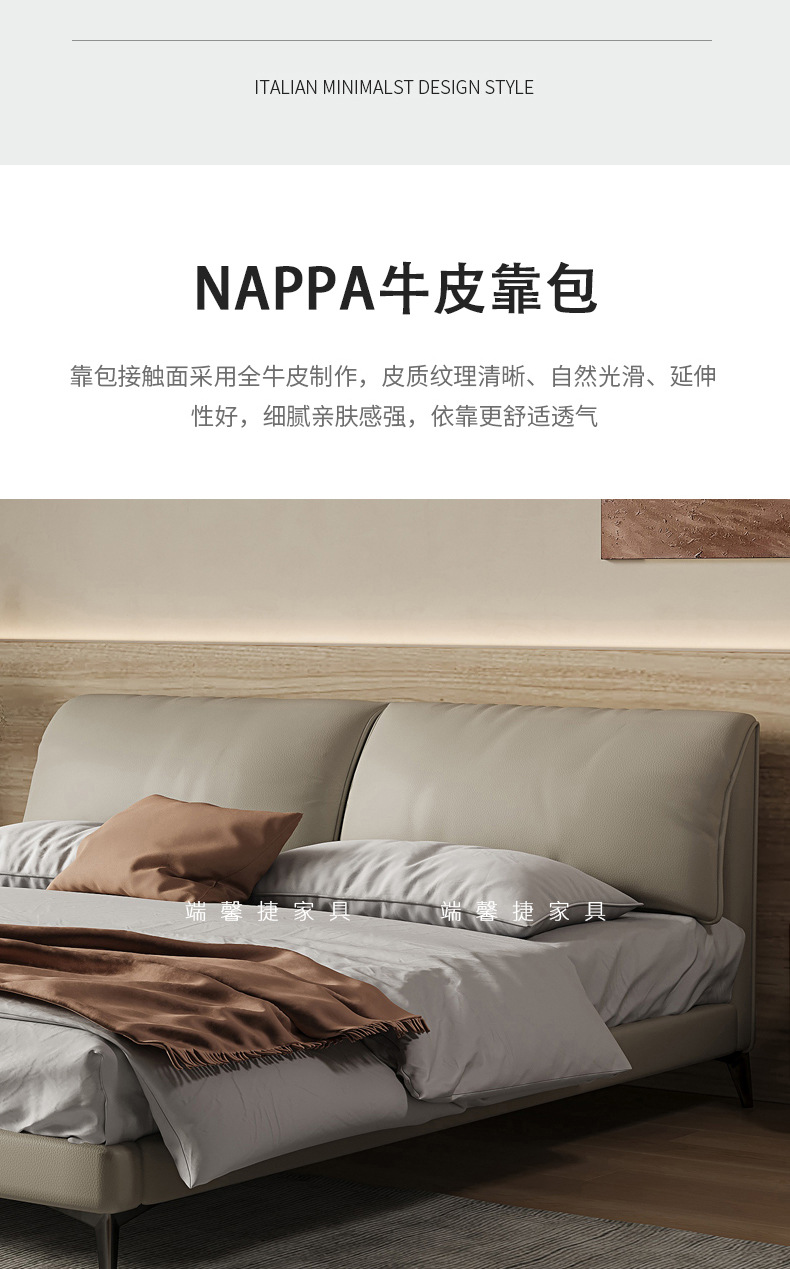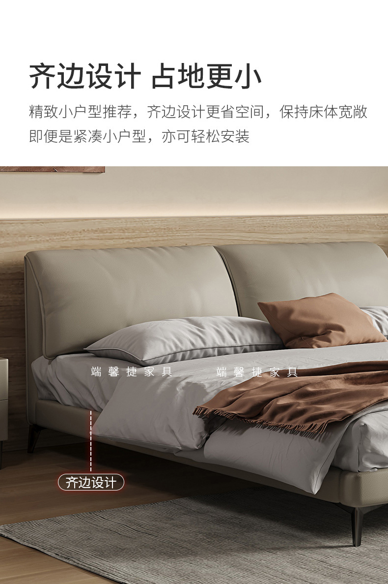 Orejas de elefante cama de cuero real italiano minimalista pequeño apartamento cama doble 1,8 m cama de borde orejas de elefante cama suave