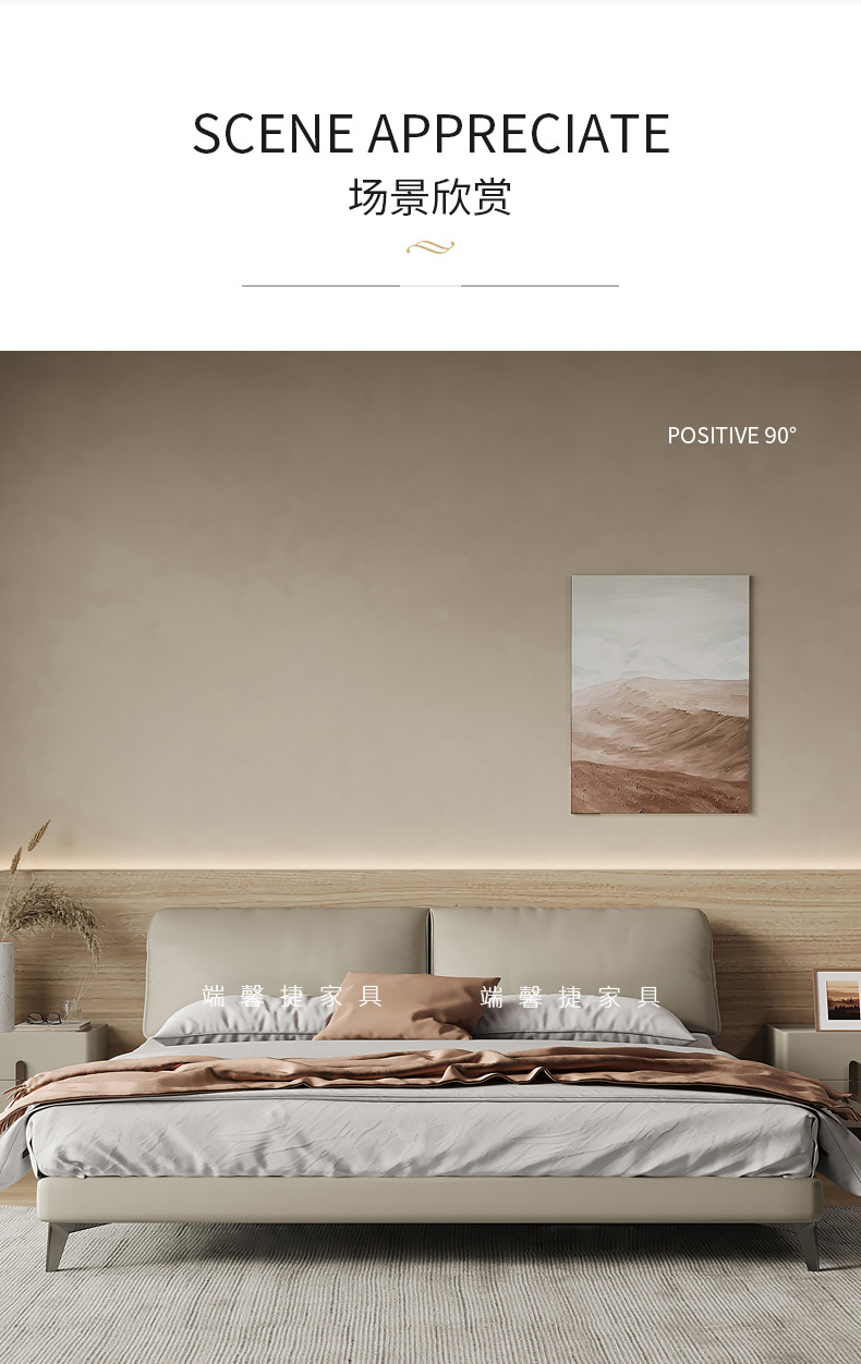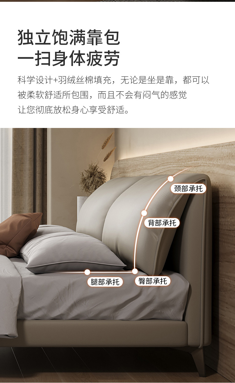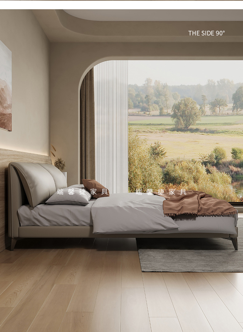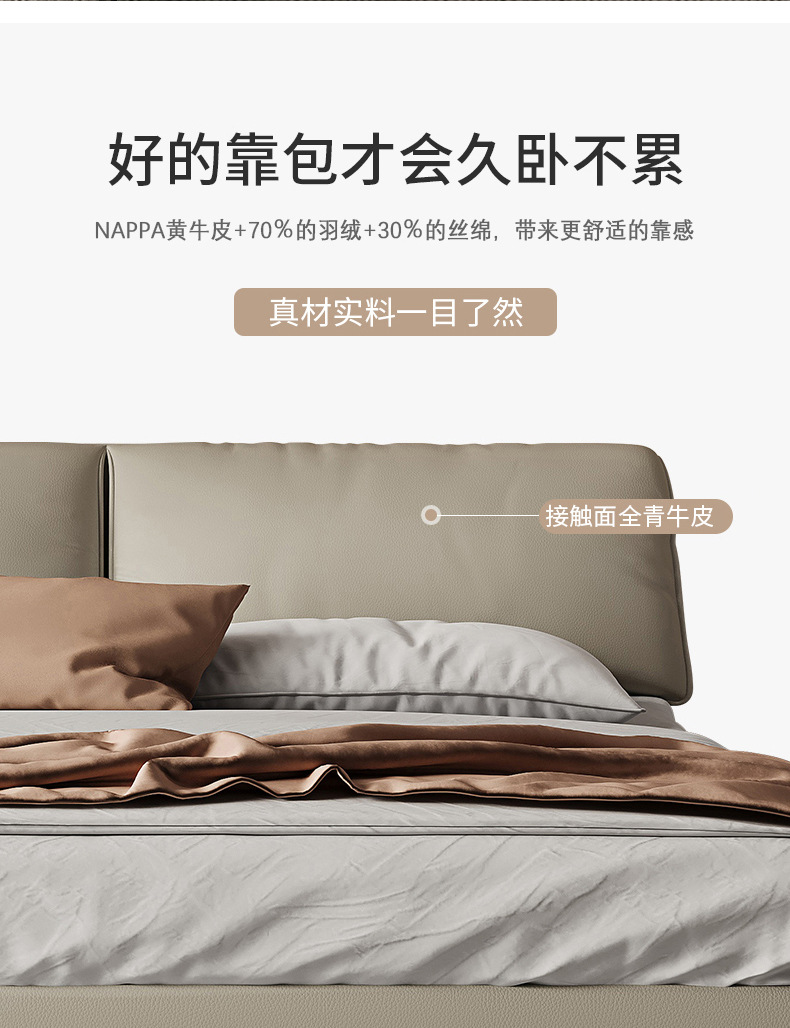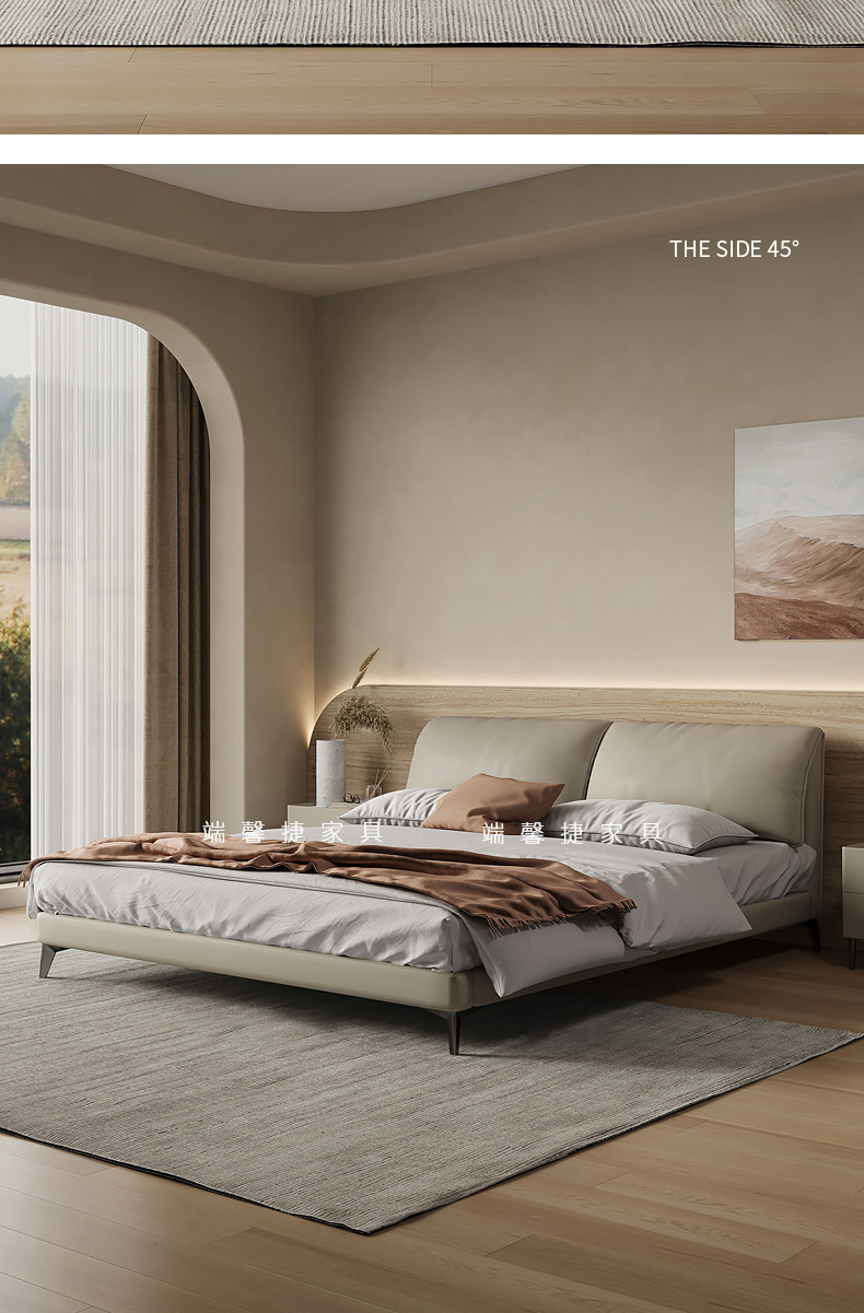 Orejas de elefante cama de cuero real italiano minimalista pequeño apartamento cama doble 1,8 m cama de borde orejas de elefante cama suave