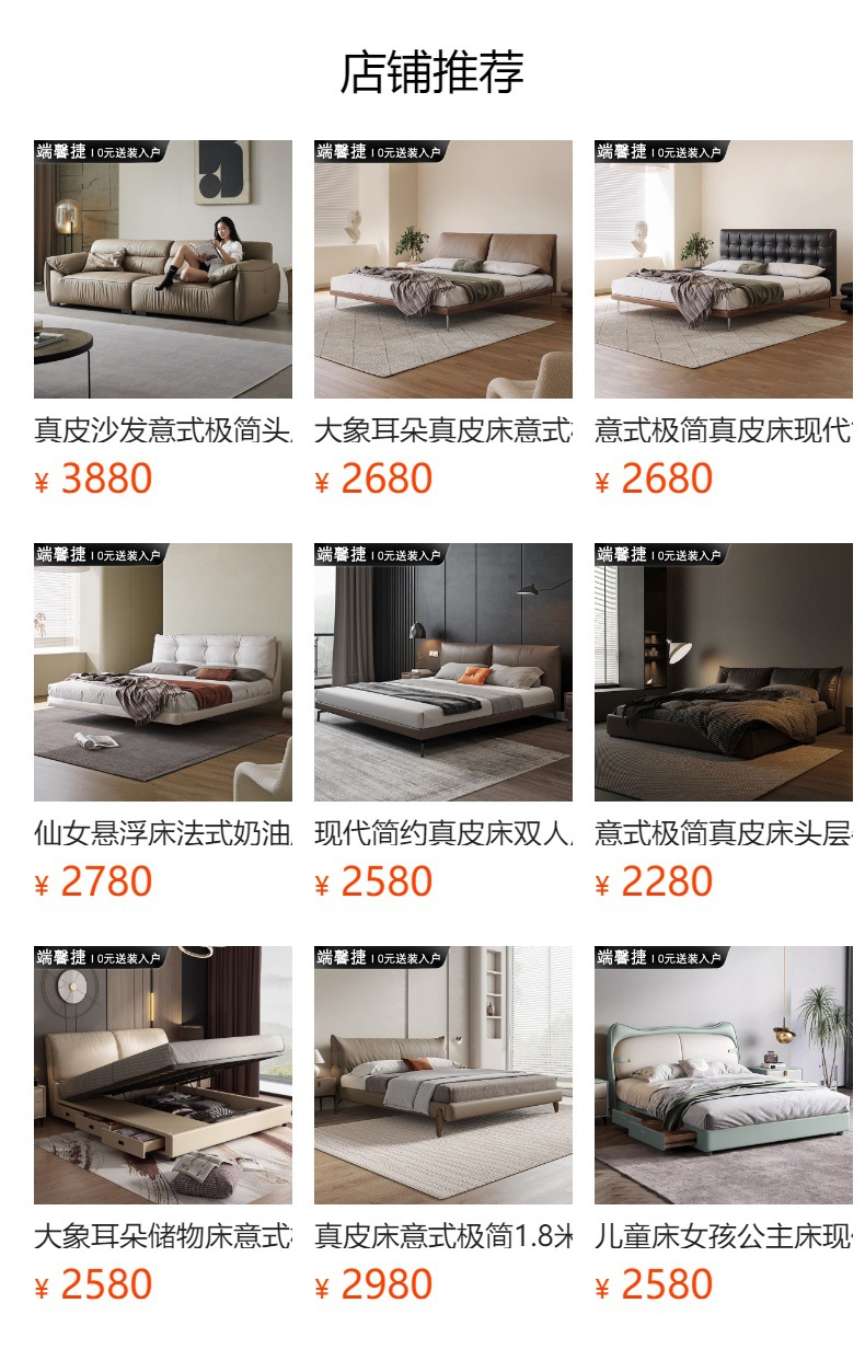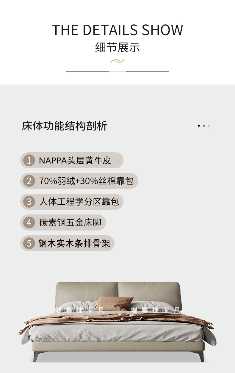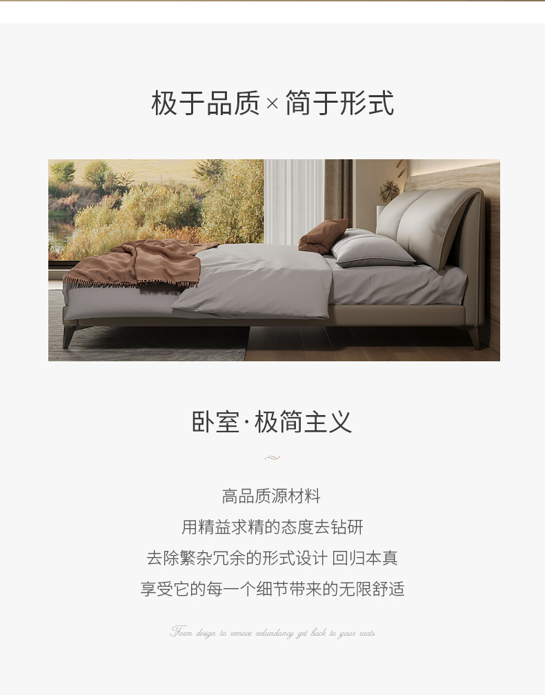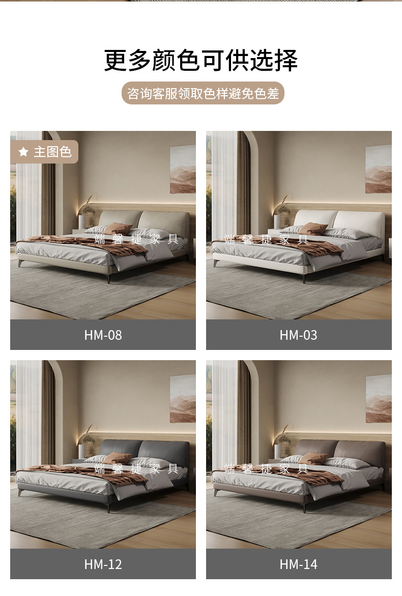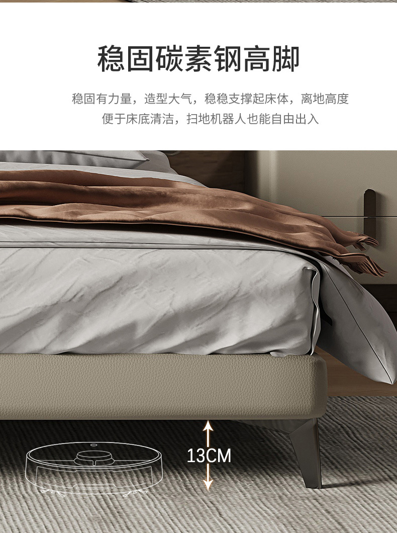 Orejas de elefante cama de cuero real italiano minimalista pequeño apartamento cama doble 1,8 m cama de borde orejas de elefante cama suave