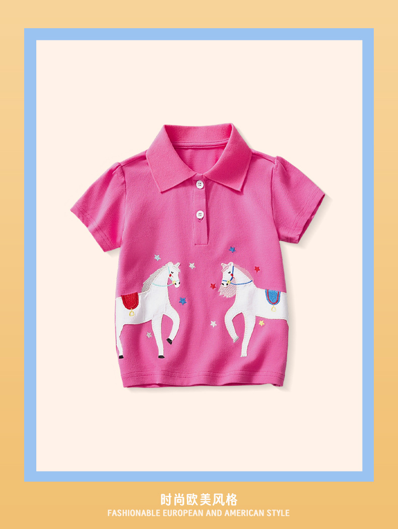 2025 verano nuevo estilo de dibujos animados para niños de manga corta camisa de polo para niñas moda casual de manga corta ropa para niños