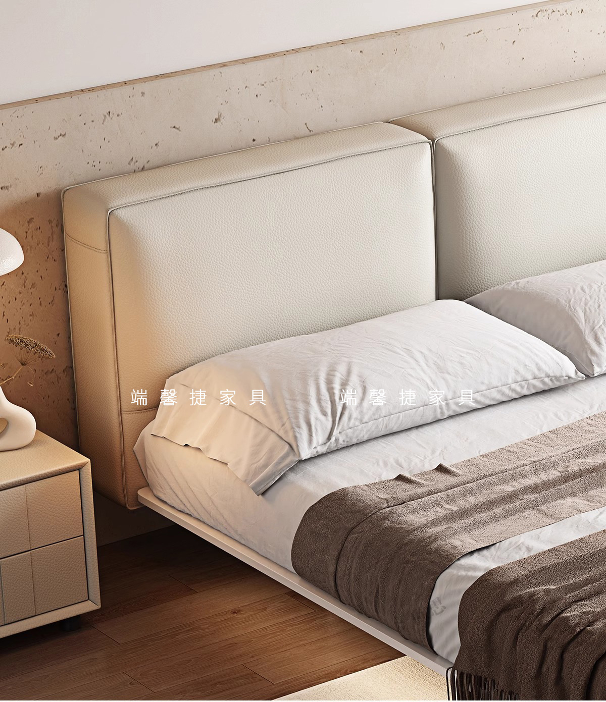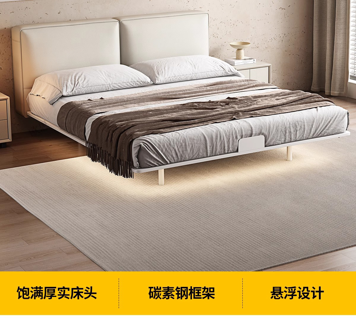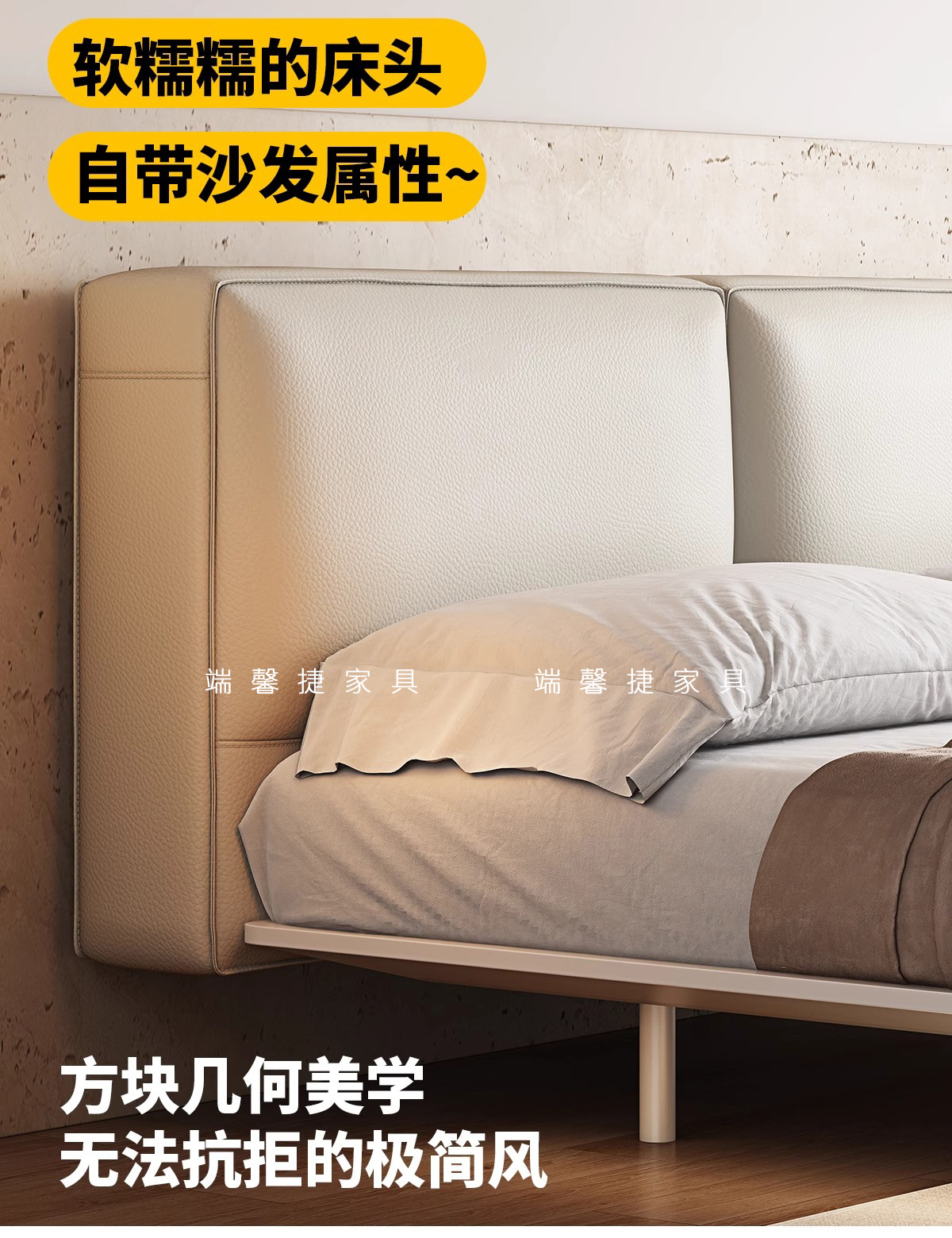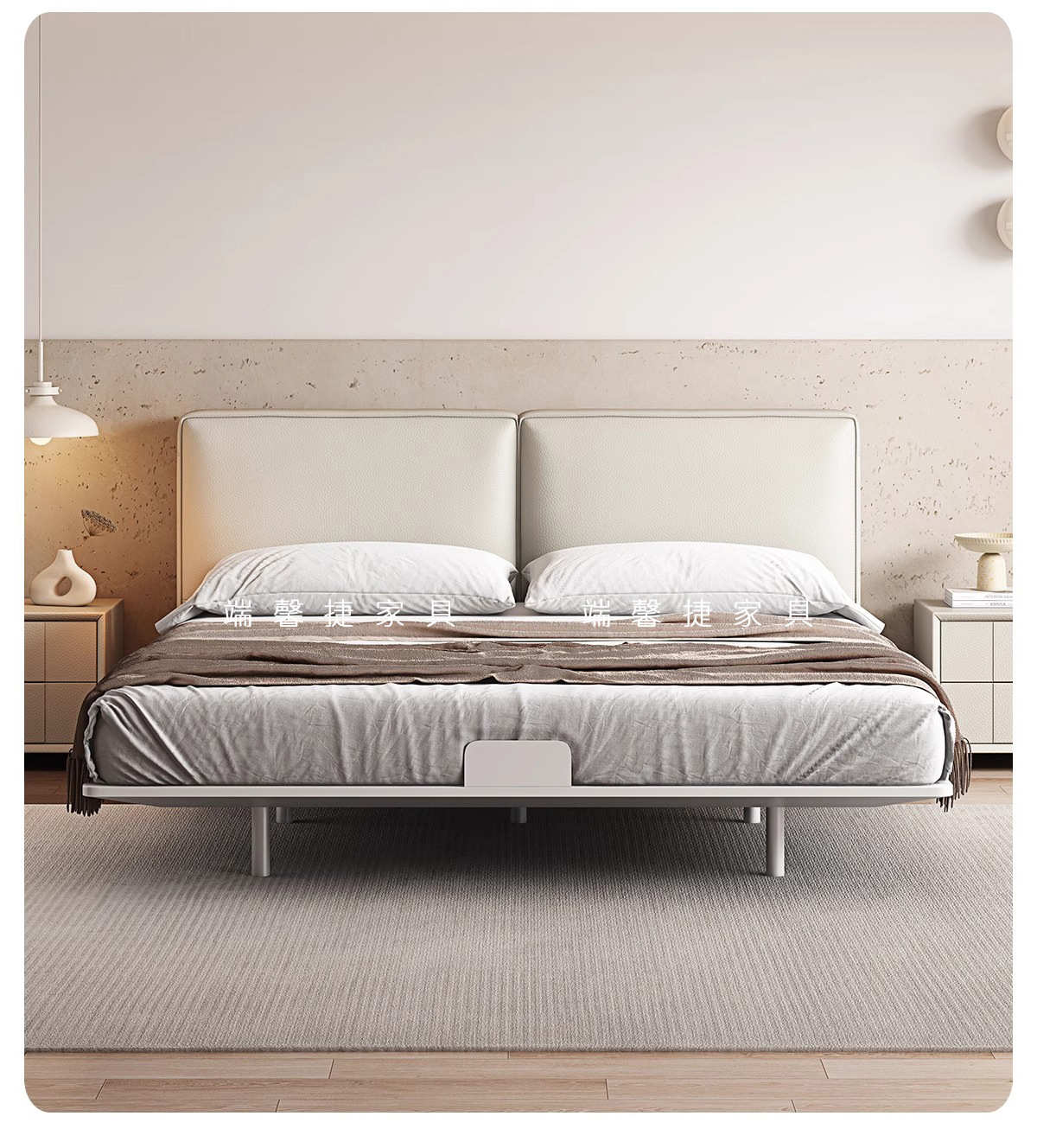 Bloqueo de tofu cama de cuero de acero al carbono cama de suspensión cama de cama principal cama doble cama de cama de acero de viento crema cama