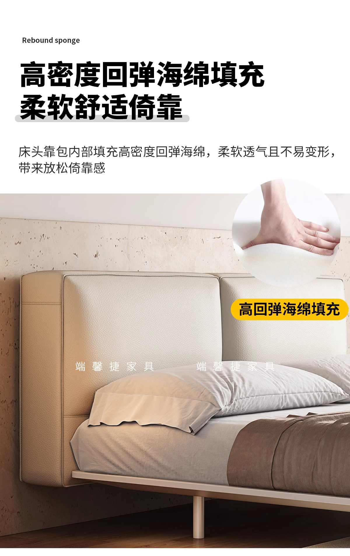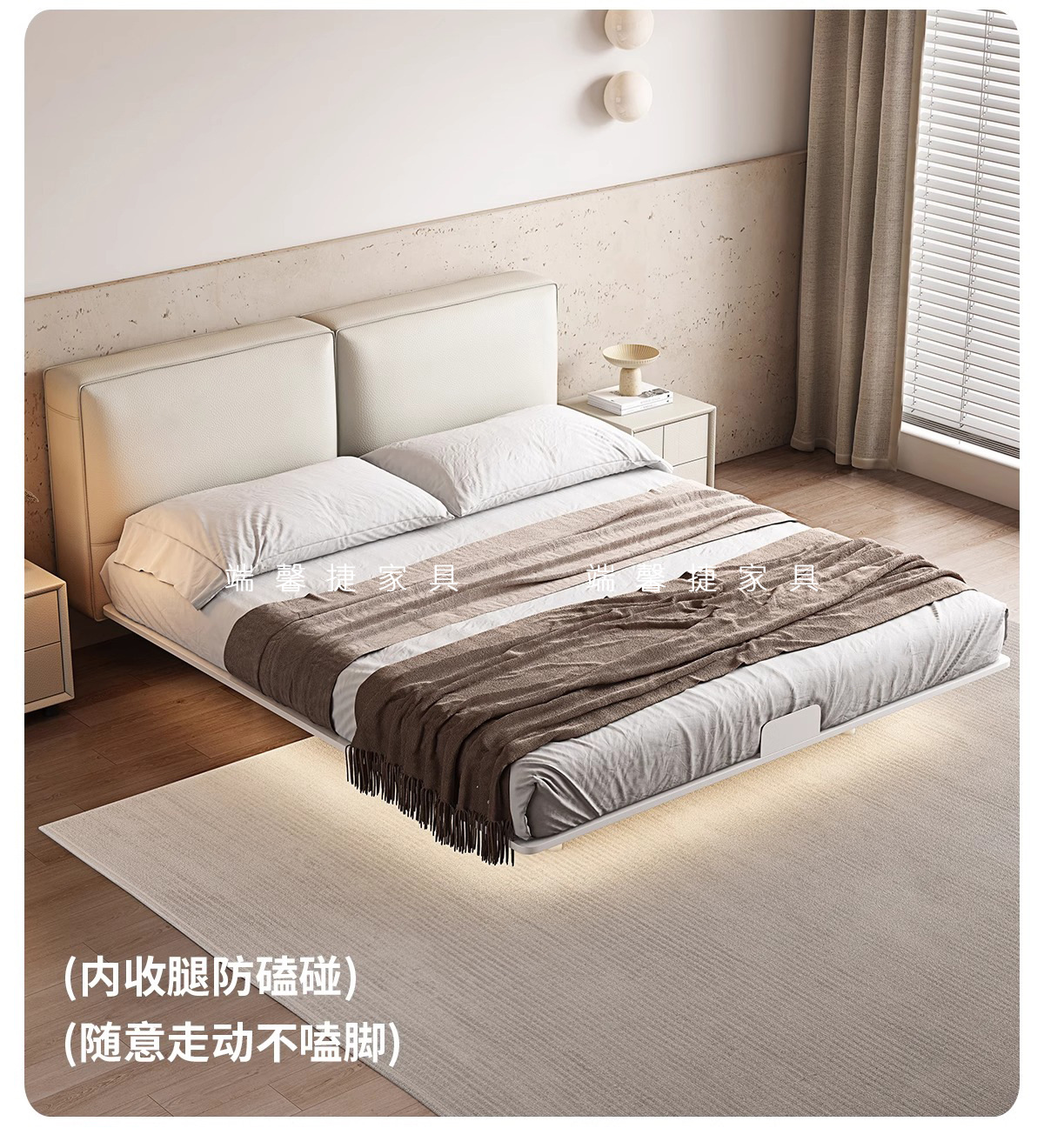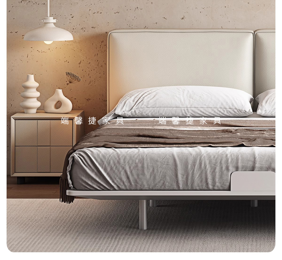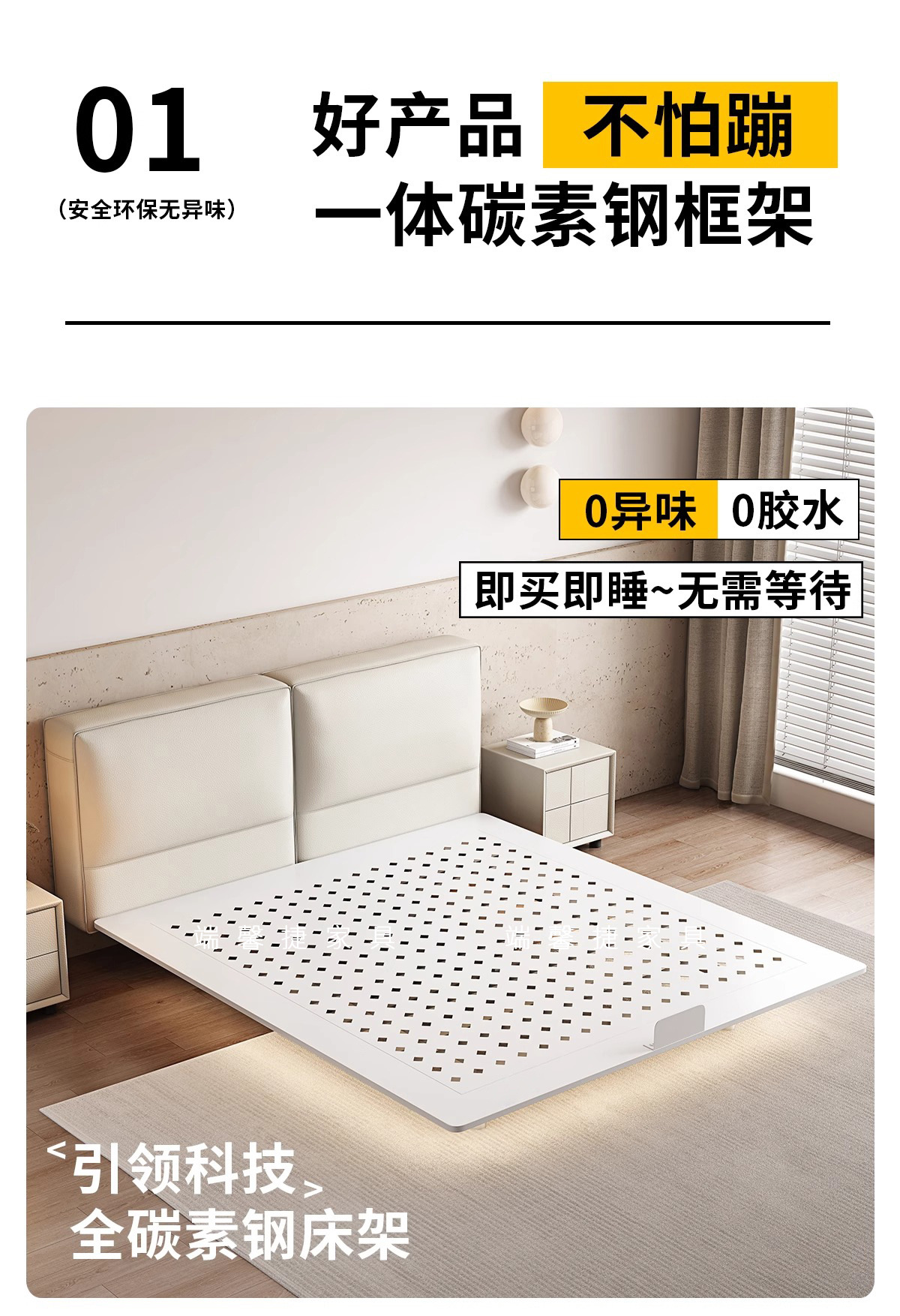 Bloqueo de tofu cama de cuero de acero al carbono cama de suspensión cama de cama principal cama doble cama de cama de acero de viento crema cama