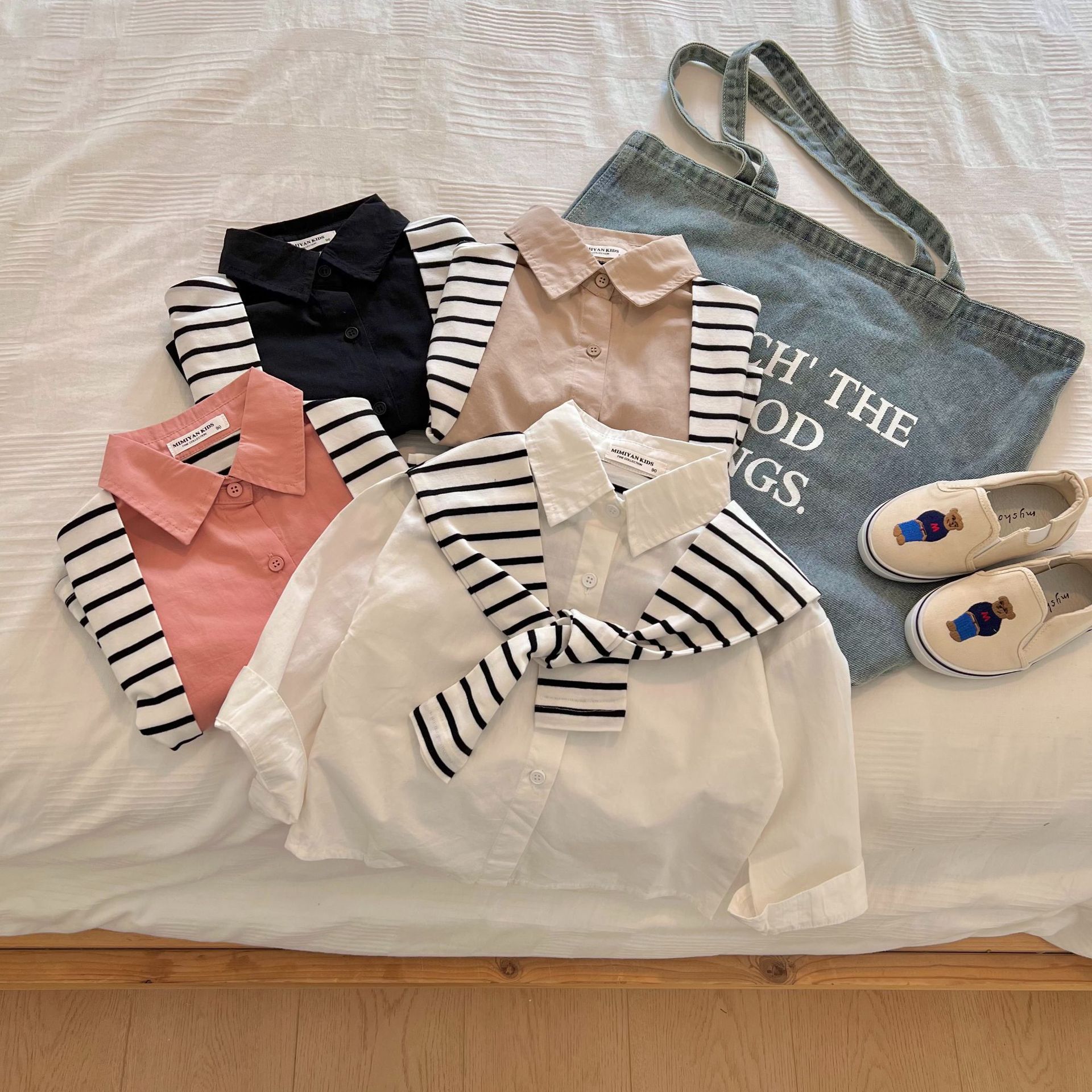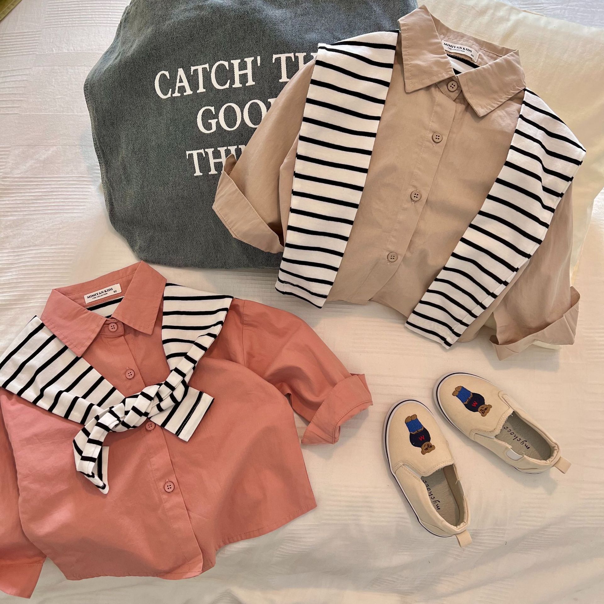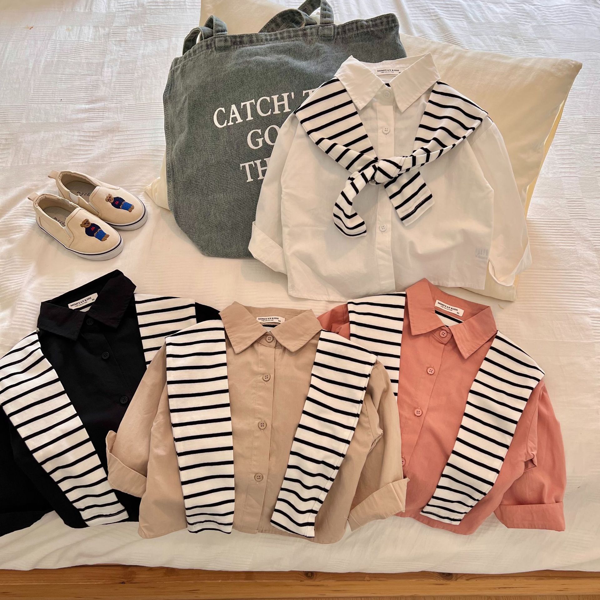 Camisas de niños estrella redonda 2025 otoño nuevo falso dos piezas de ropa de niñas camisa de chale de color sólido personalidad de primavera y otoño bebé