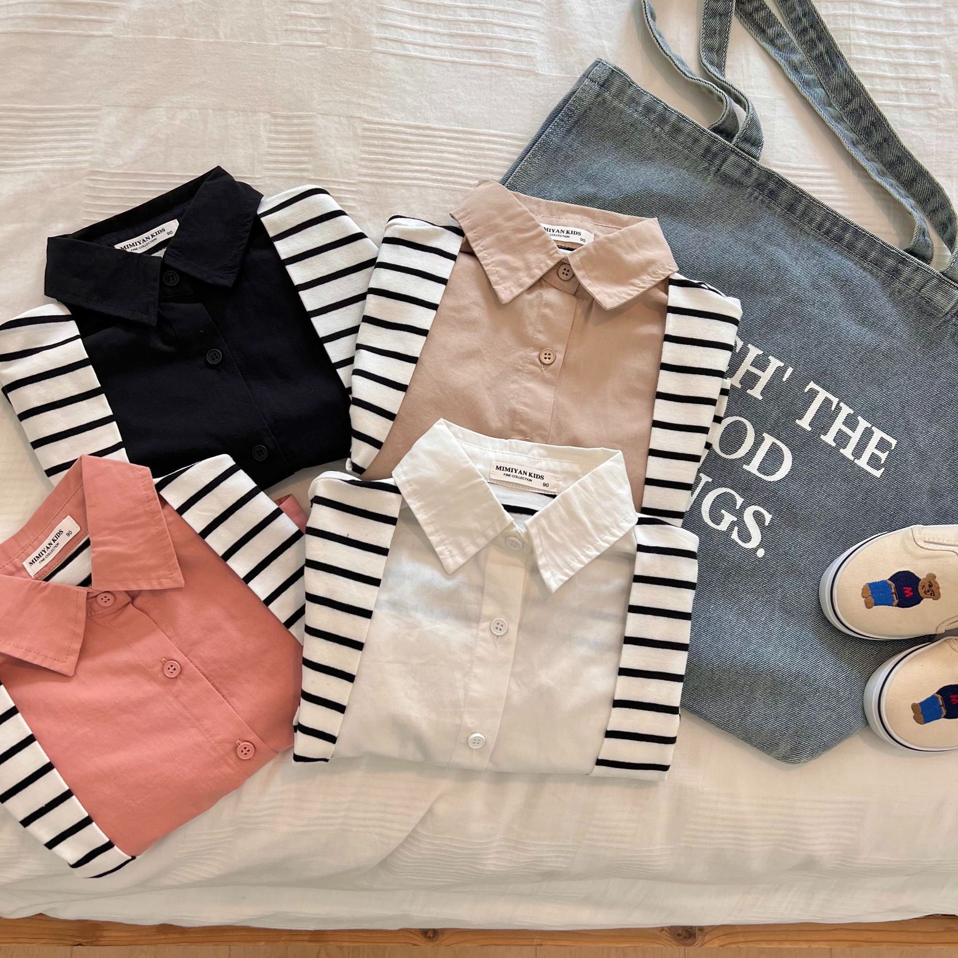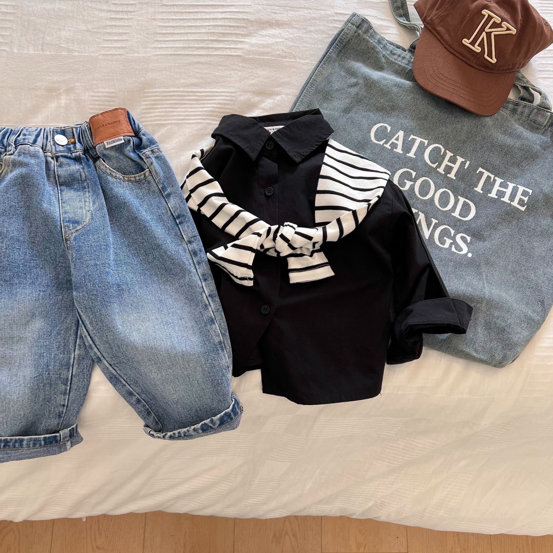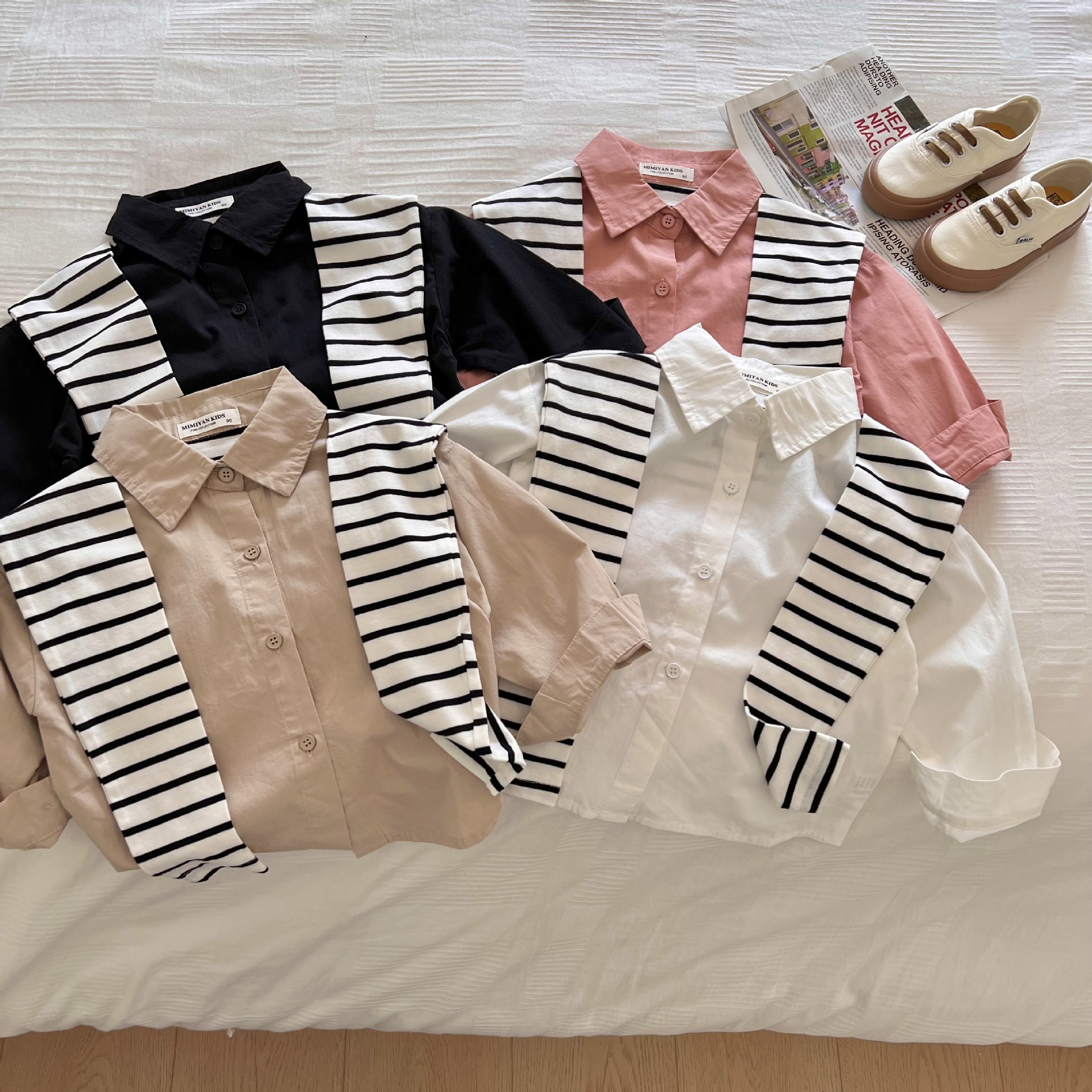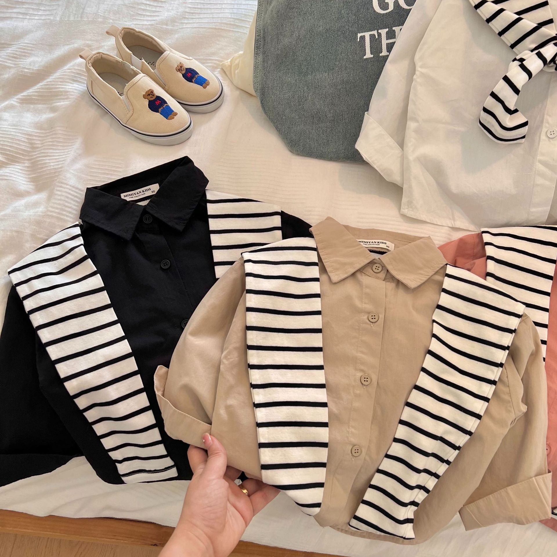 Camisas de niños estrella redonda 2025 otoño nuevo falso dos piezas de ropa de niñas camisa de chale de color sólido personalidad de primavera y otoño bebé