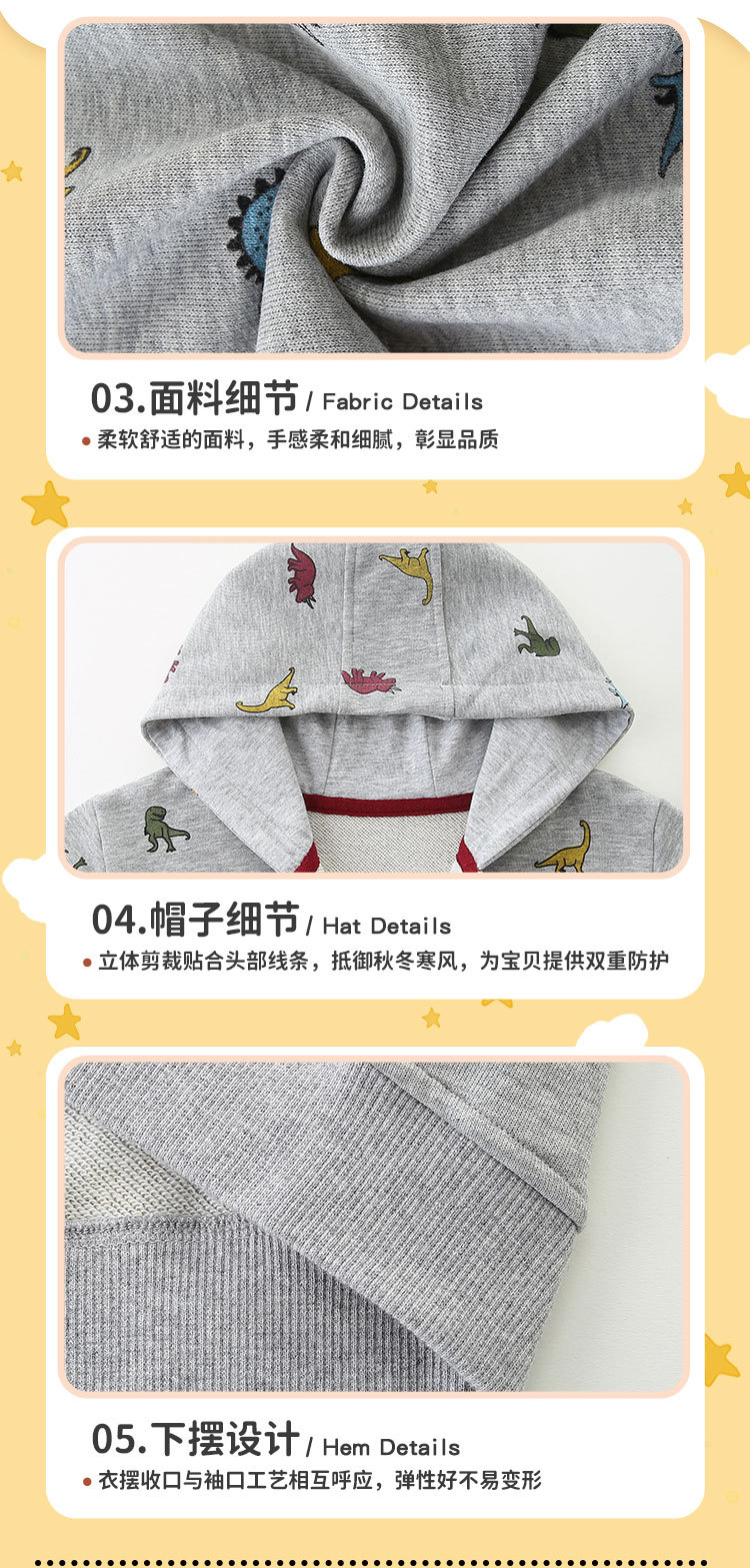 Otoño nuevo chaqueta de niños con capuzas de estilo europeo y americano con cremallera chaqueta de niños de algodón de punto impresa chaqueta de niños