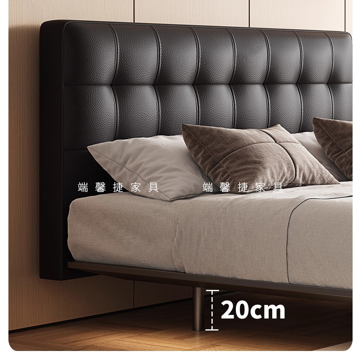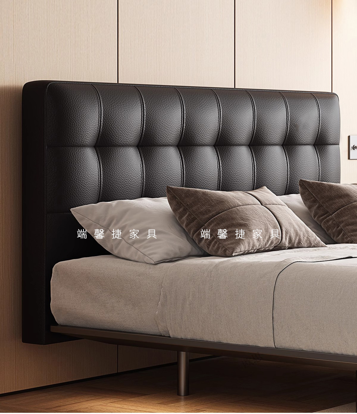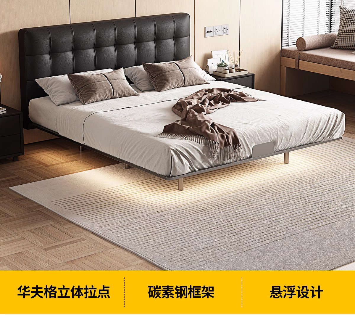 Waffle de acero cama flotante retro estilo medieval paquete suave dormitorio pequeño cama doble cama de cuero minimalista italiana