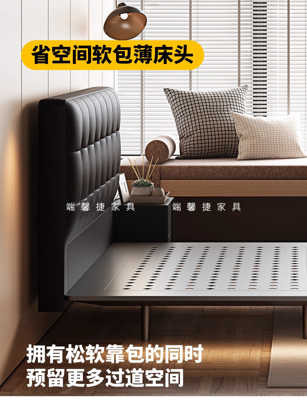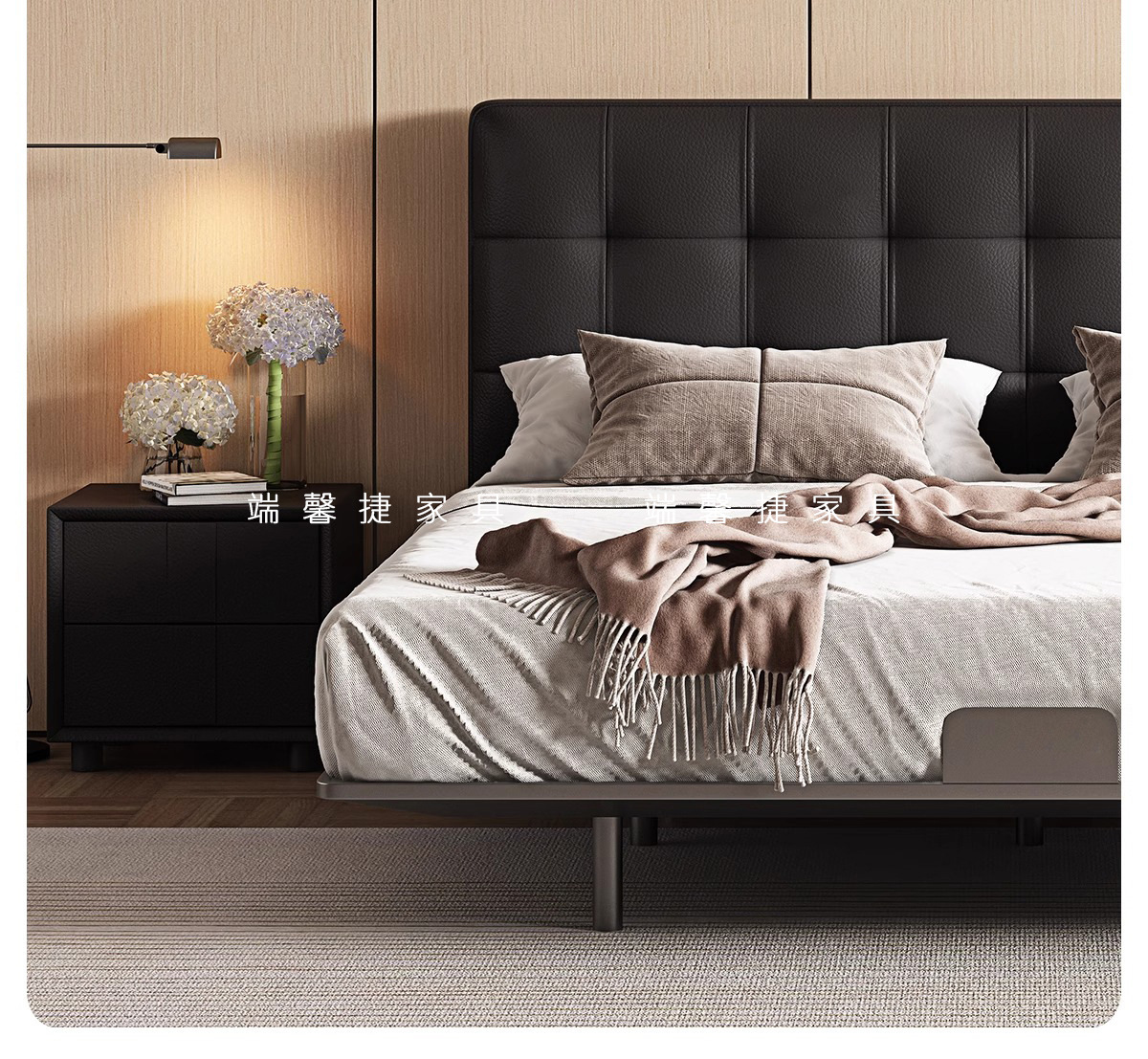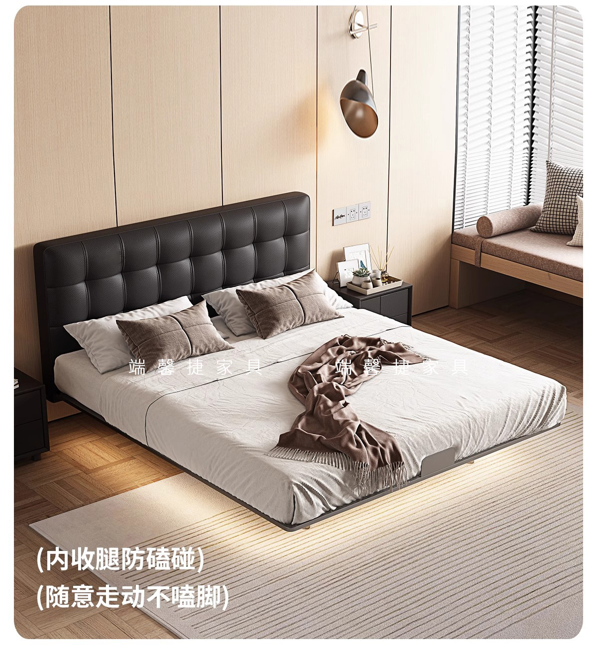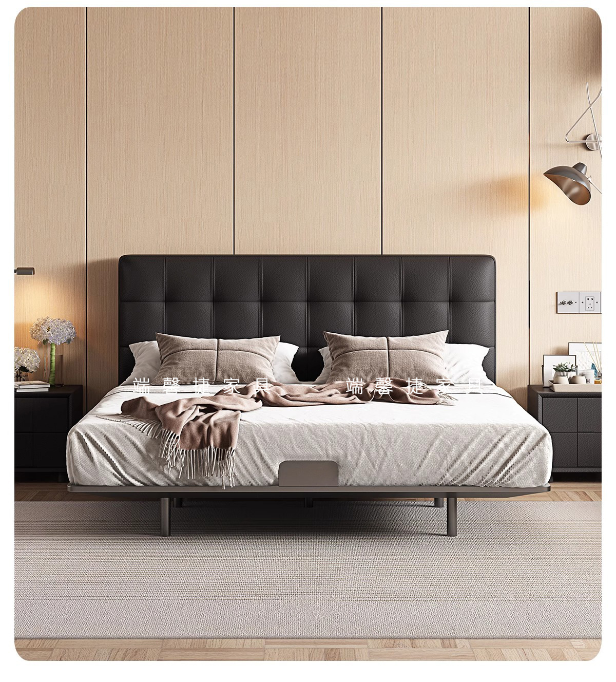 Waffle de acero cama flotante retro estilo medieval paquete suave dormitorio pequeño cama doble cama de cuero minimalista italiana
