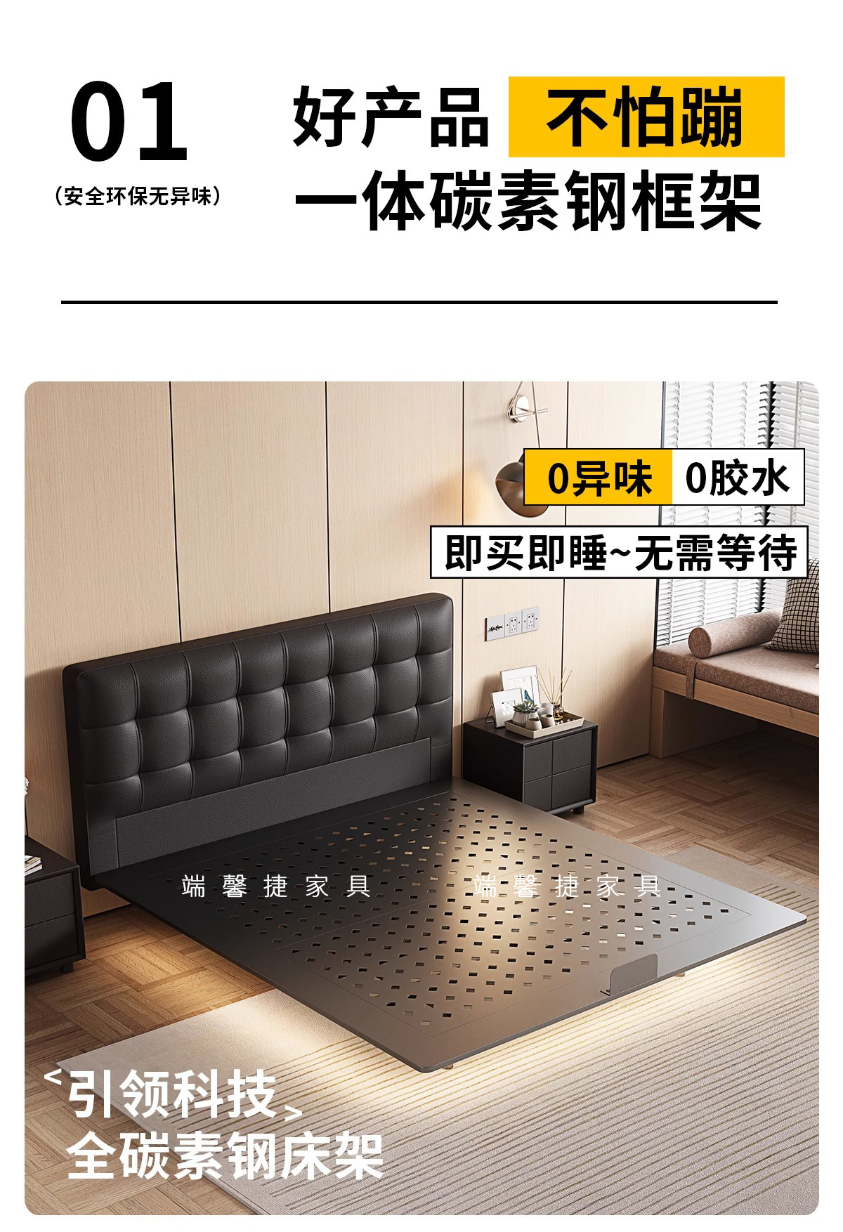 Piel de buey de cabeza [marco de cama de acero al carbono - sin cinta de lámpara]