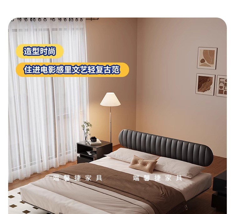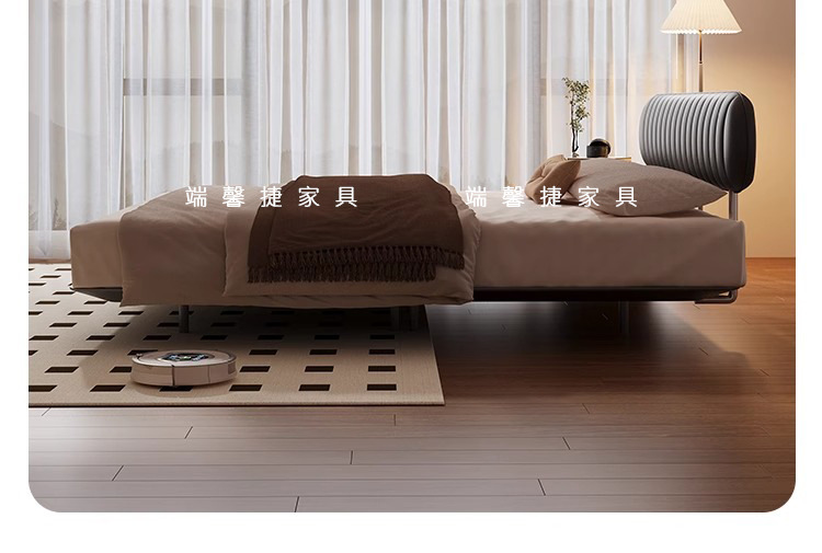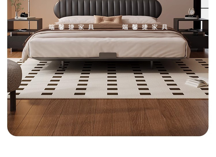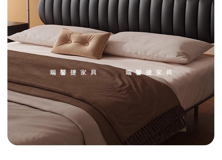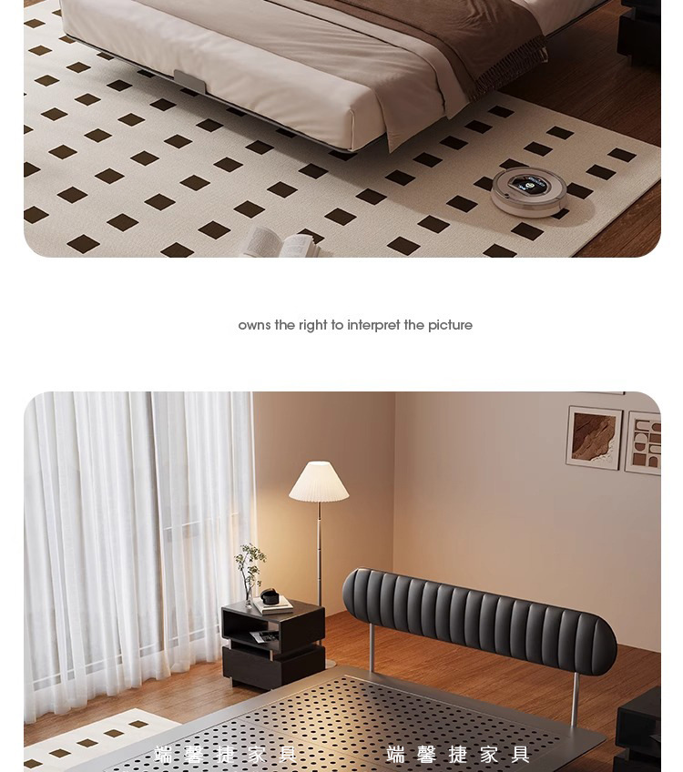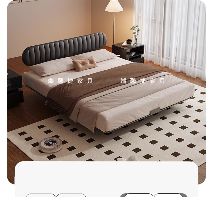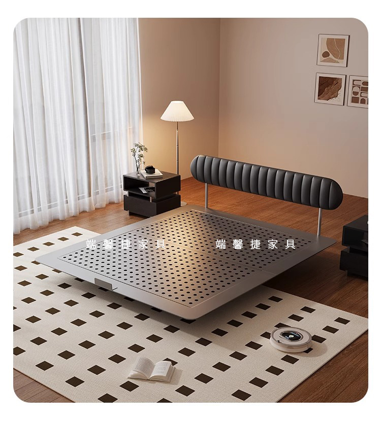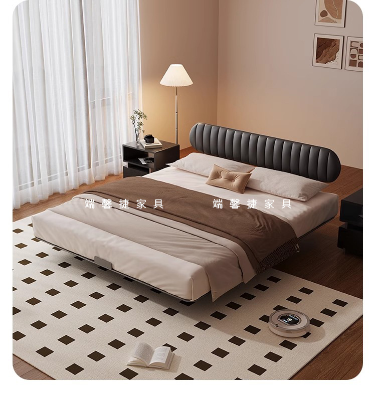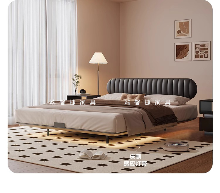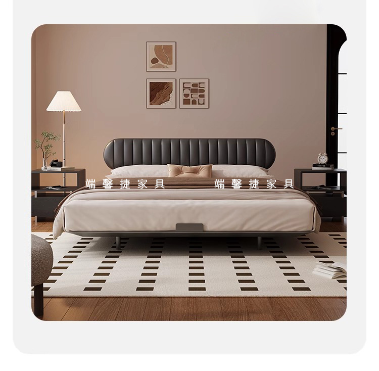Cama de acero al carbono ultra delgada con respaldo cama flotante de estilo medieval cama de cuero negro retro cama de cuero nueva
