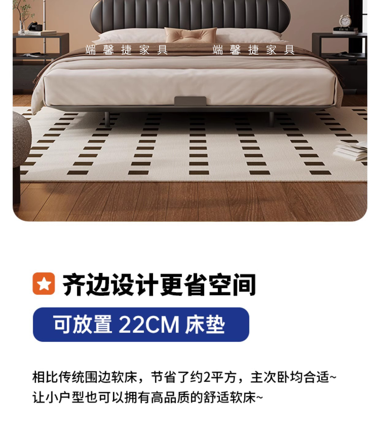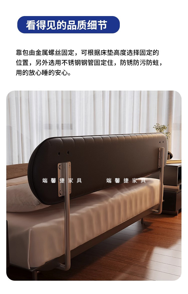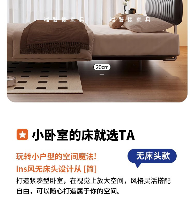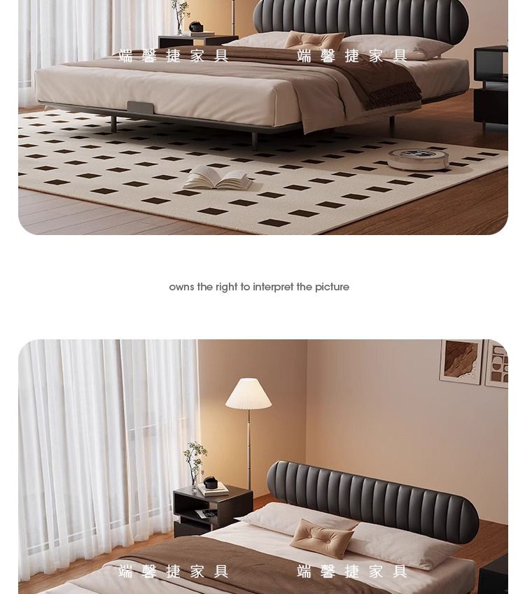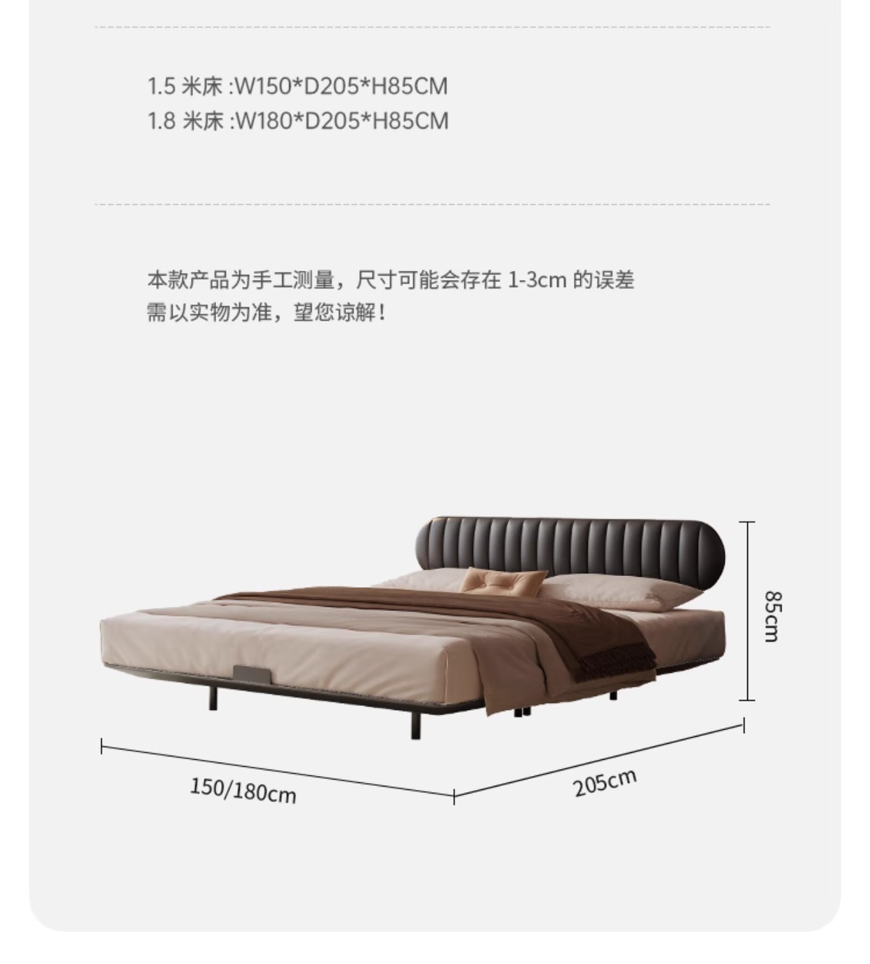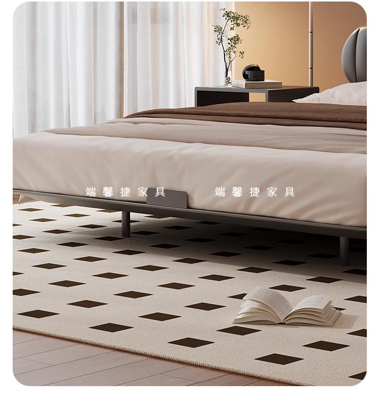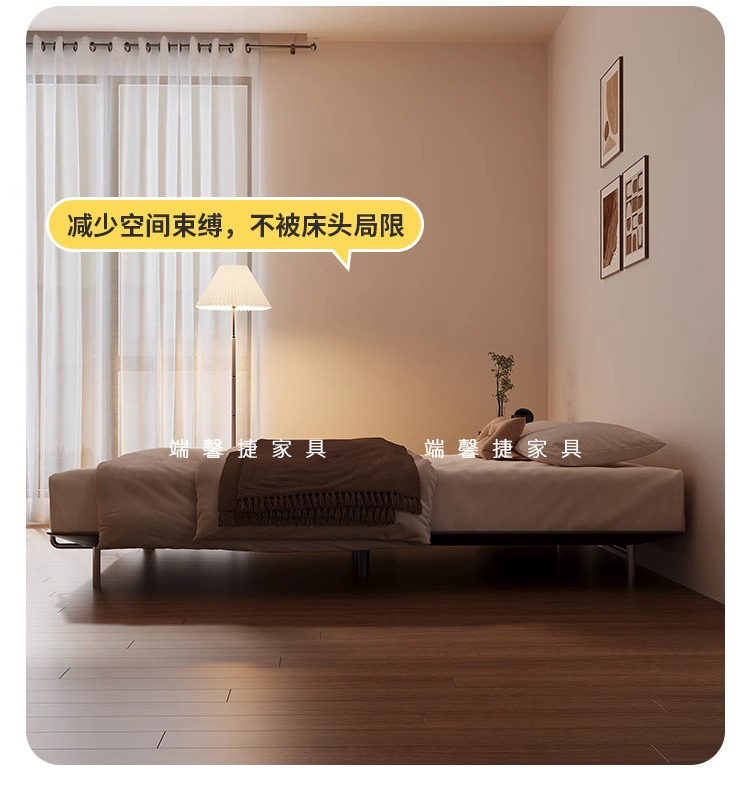 Cama de acero al carbono ultra delgada con respaldo cama flotante de estilo medieval cama de cuero negro retro cama de cuero nueva