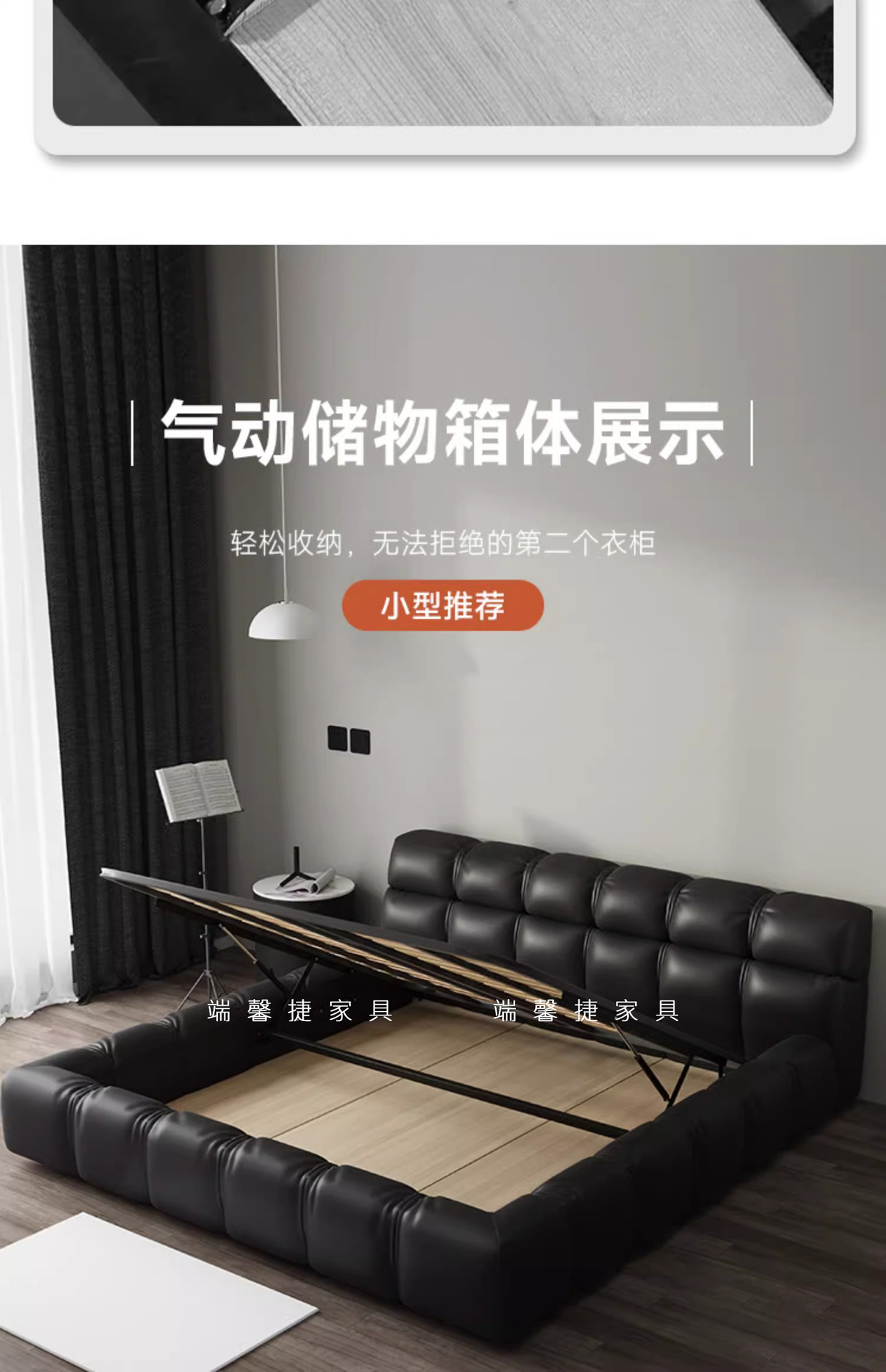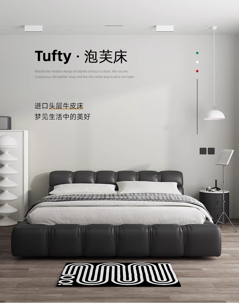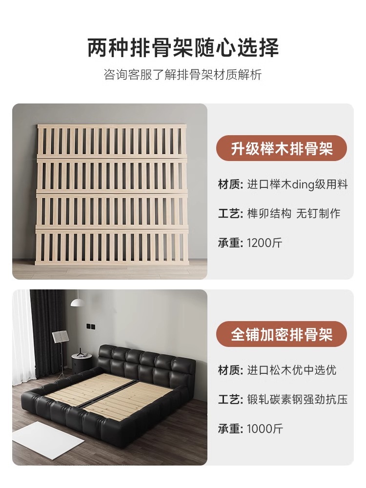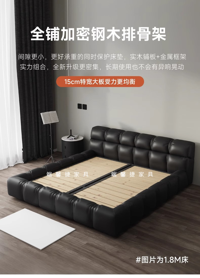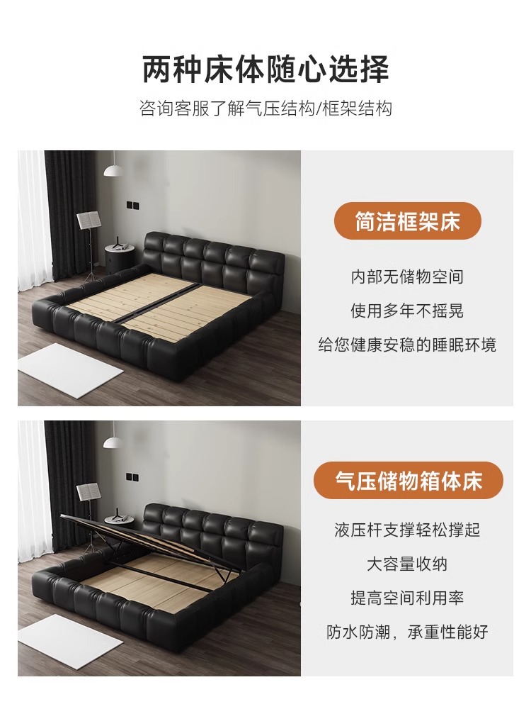 Cama de cuero italiano minimalista cama de puff negro dormitorio principal almacenamiento cama matrimonial cama doble 2 * 2.2m cama de tatami queen
