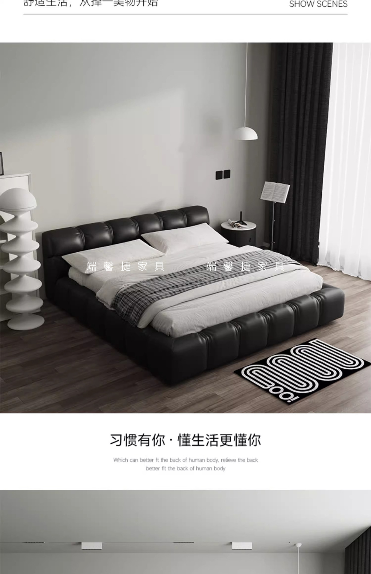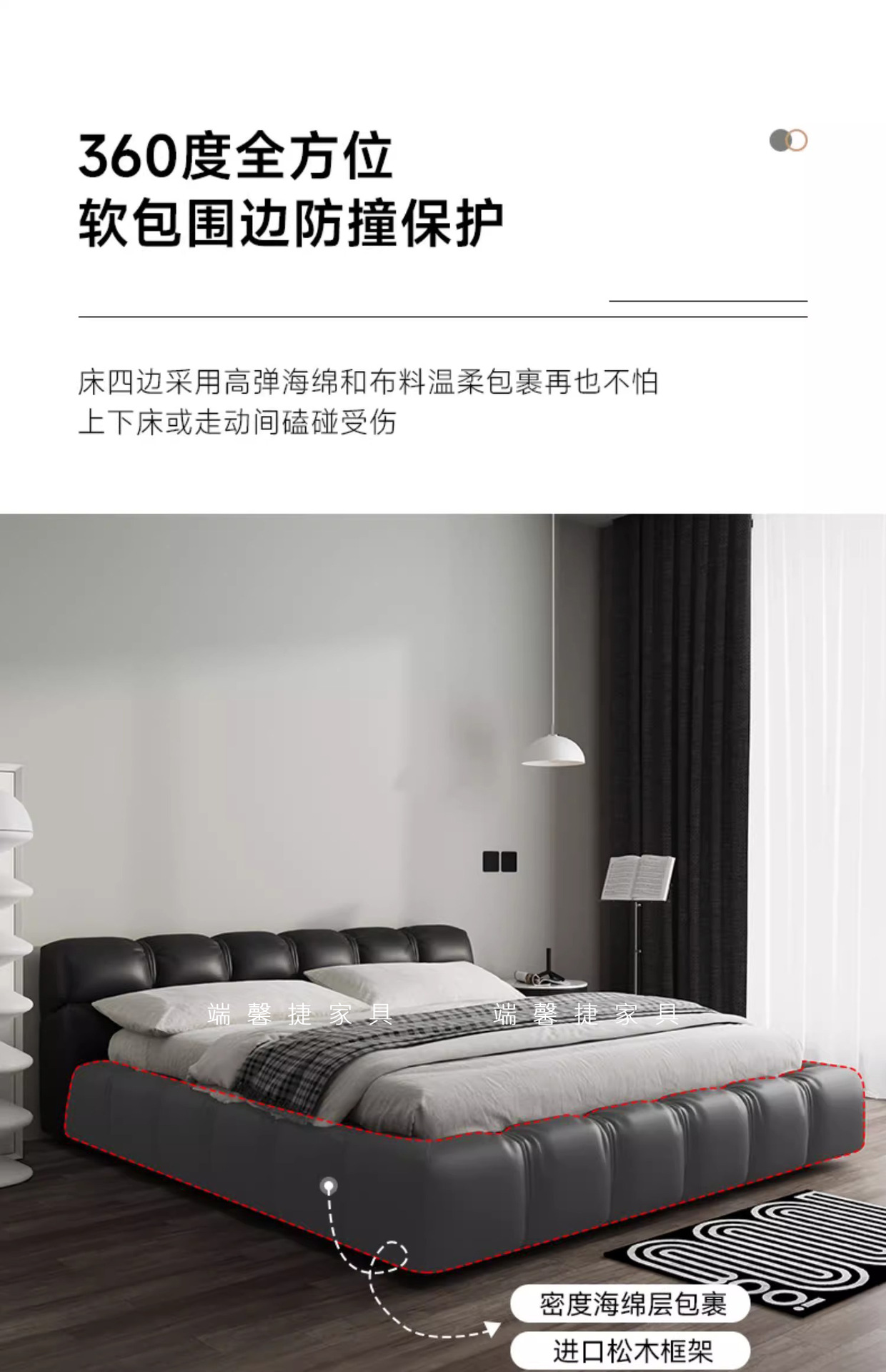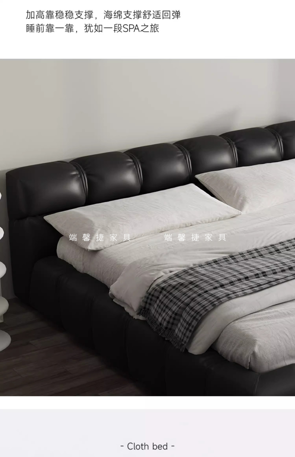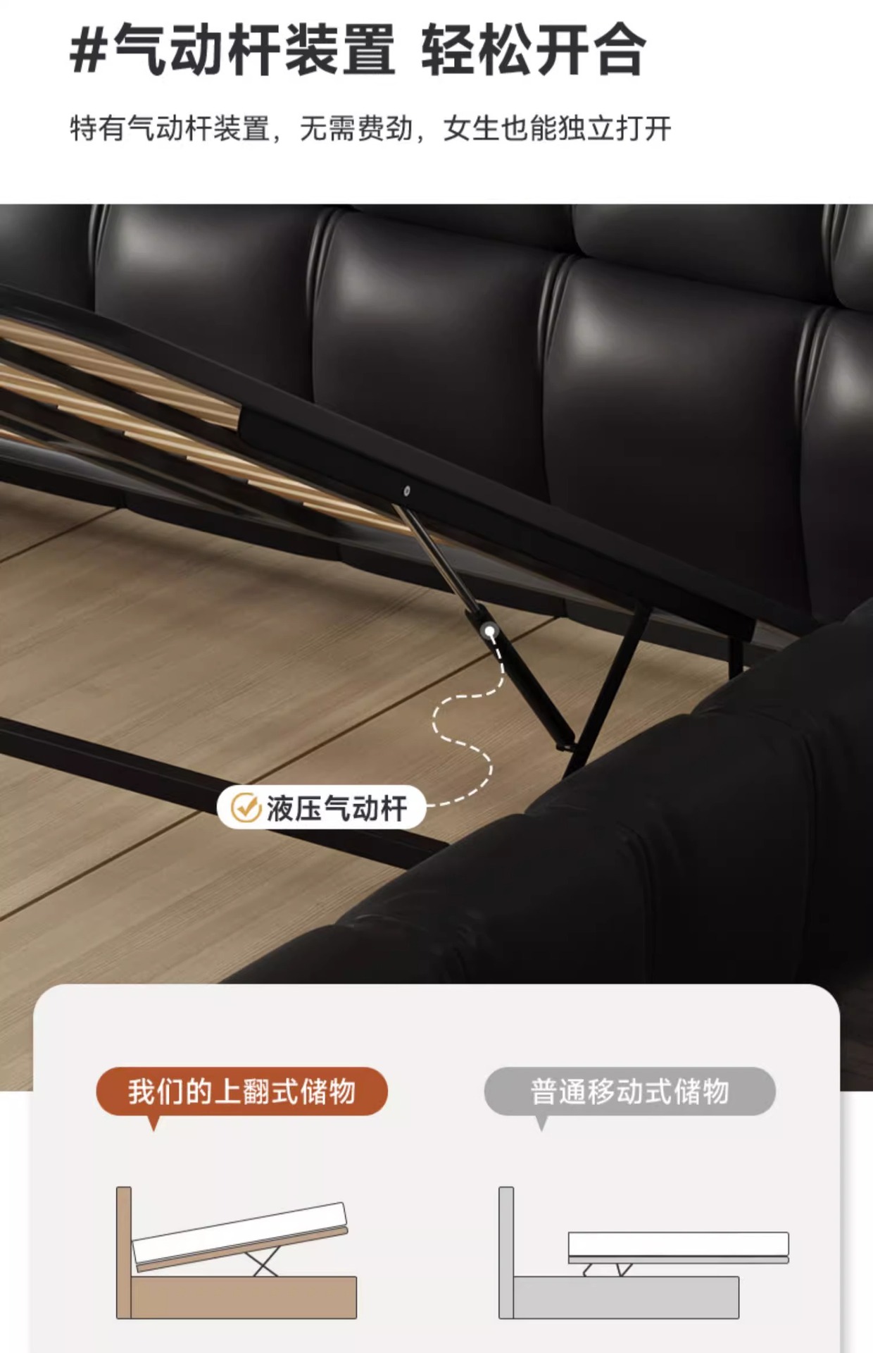 Cama de cuero italiano minimalista cama de puff negro dormitorio principal almacenamiento cama matrimonial cama doble 2 * 2.2m cama de tatami queen