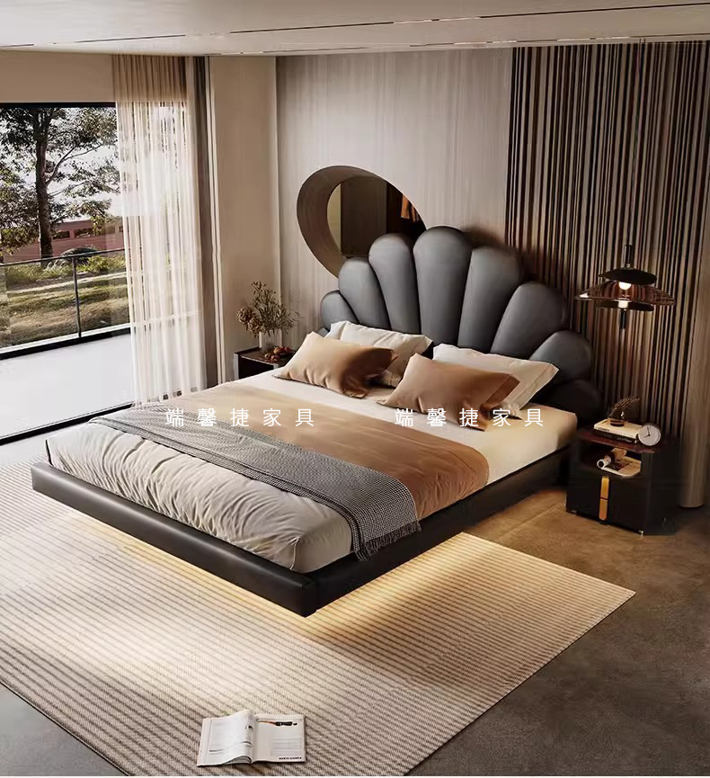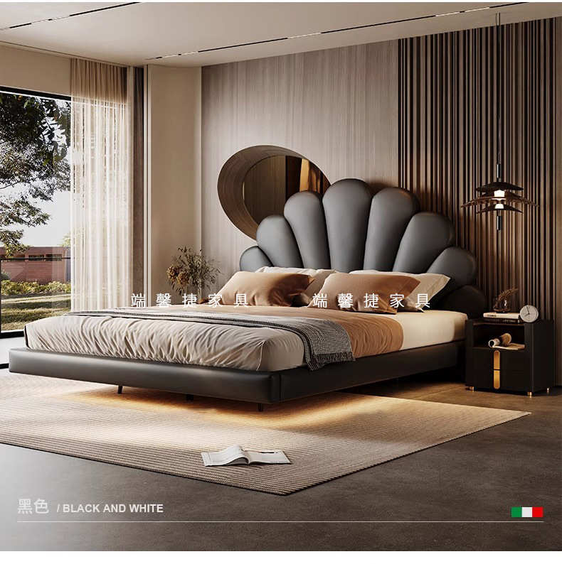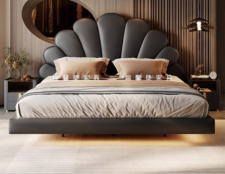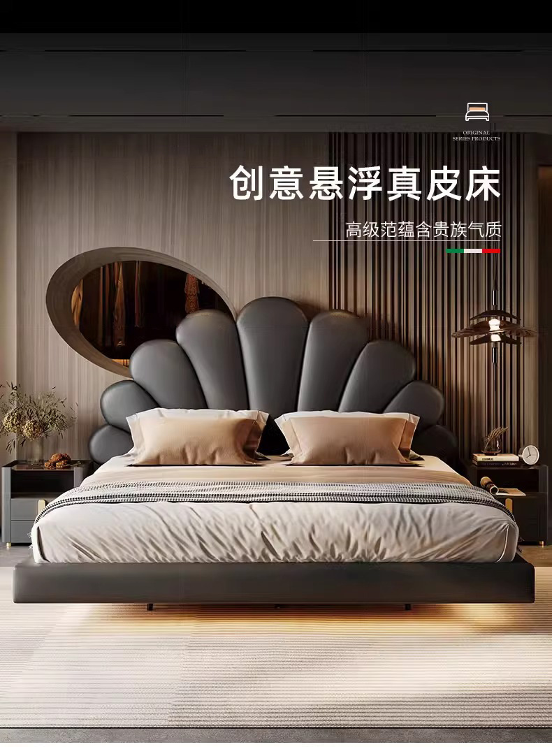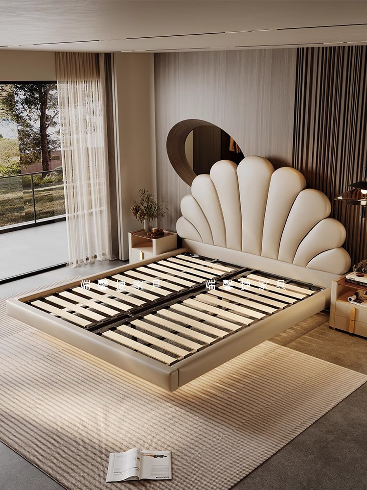 2024 nueva cama flotante italiana cama de cuero minimalista cama principal cama doble 2 * 2 metros